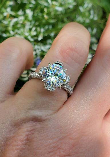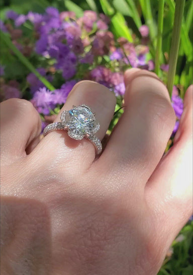 This stunning Platinum Halo Cushion Cut Diamond Ring features a cushion-cut diamond that defies convention with its unique blend of both square and...