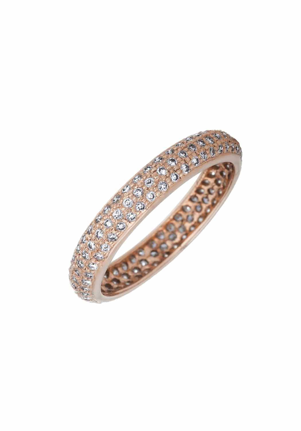 A triple row of dazzling diamonds encircles the finger on this gorgeous 18k rose gold diamond eternity ring by Sethi Couture. This beauty can be mixed and matched with any jewelry collection.