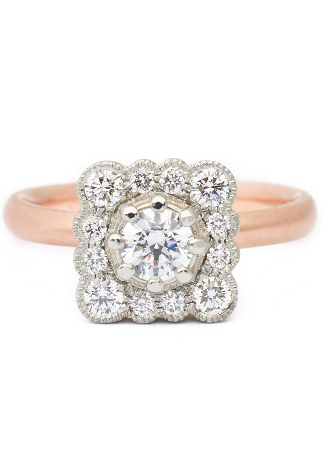 Anne Sportun Lauren Scalloped Square Halo Diamond Ring