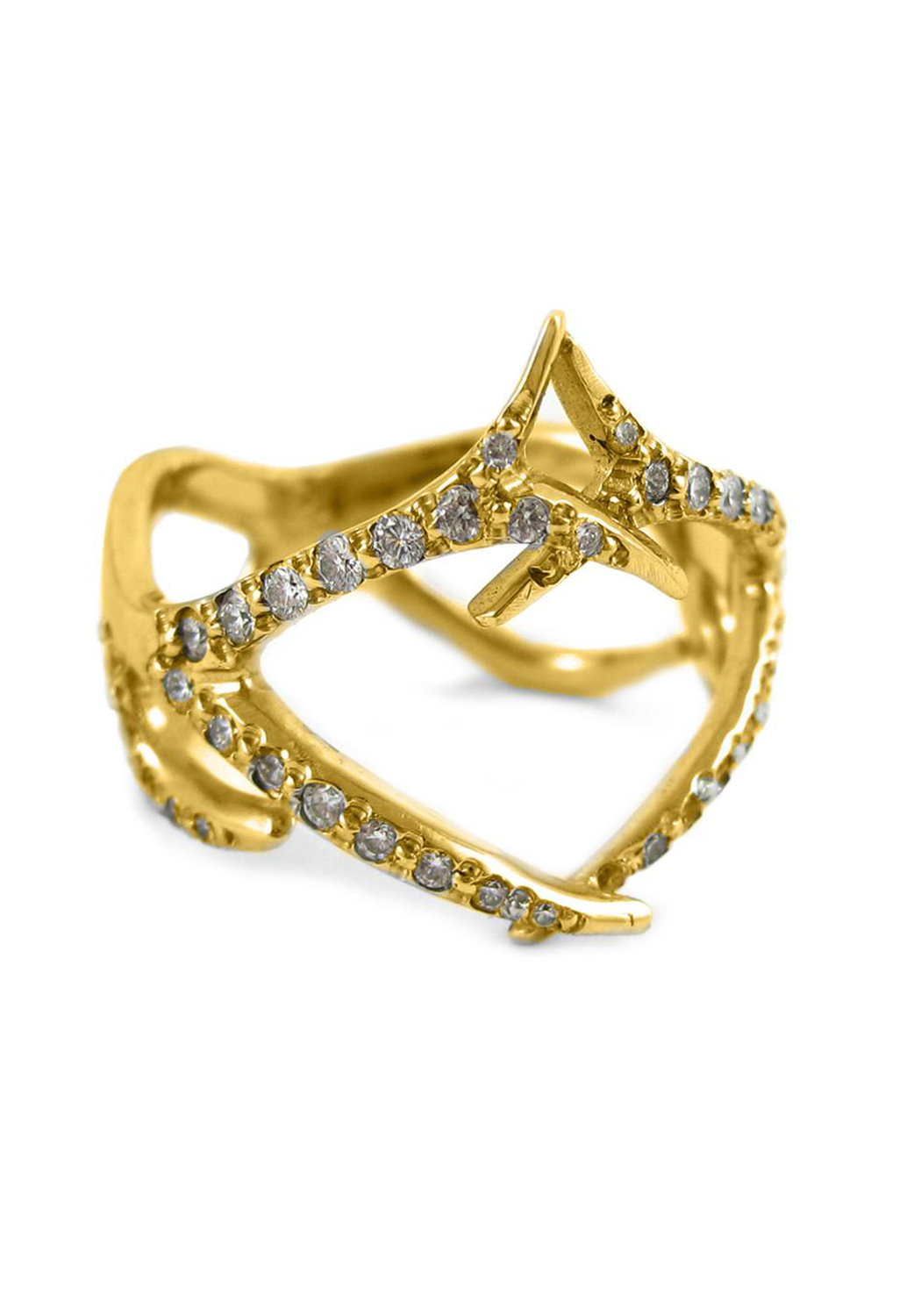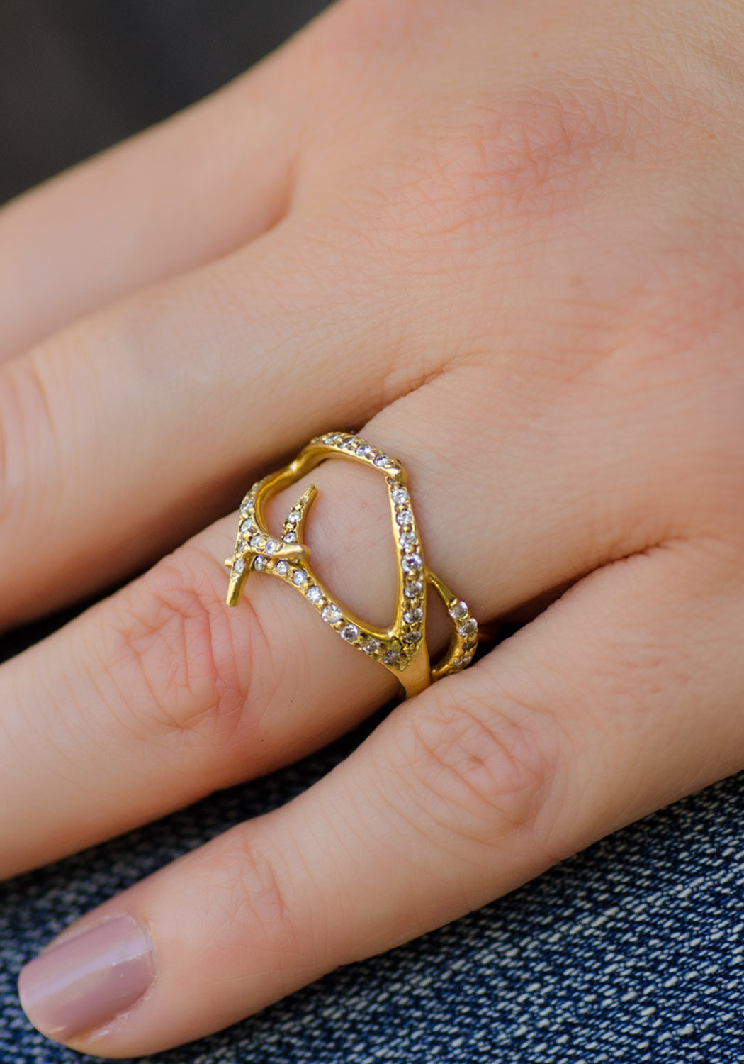 K. Brunini 18K Yellow Gold Diamond Double Antler Ring