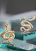 Ready to slither into your heart, the Ole Lynggaard Snakes pave diamond ring features 239 pavé-set diamonds in different sizes, following the shape of the ring. Designed by Ole Lynggaard, the Snakes pavé diamond ring medium is crafted from 18 karat yellow gold, and 1.35 carats of sparkling white diamonds. Wrap it around a finger as a cocktail ring and accent with other gold jewelry to make a fashion forward look for any occasion.