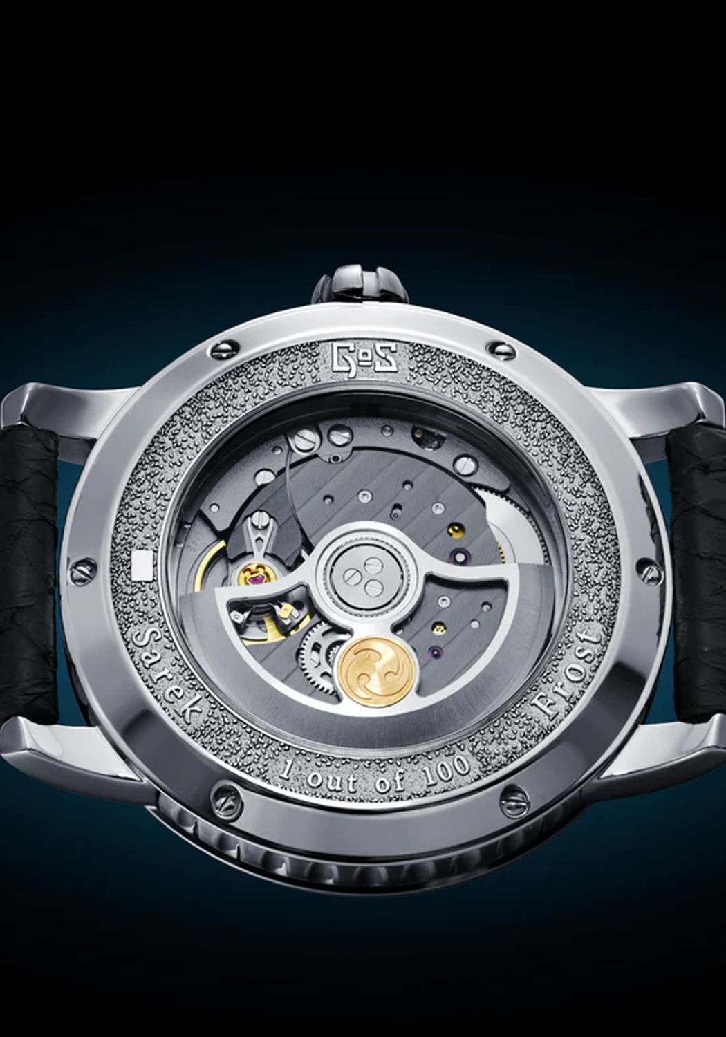 Every watch engraved with “Sarek - Frost - One out of 100 ” to indicate the limited edition in addition to a serial number.