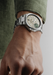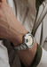 - Double index at 12 o'clock on matte black disc with Arabic numerals at 6 o'clock.