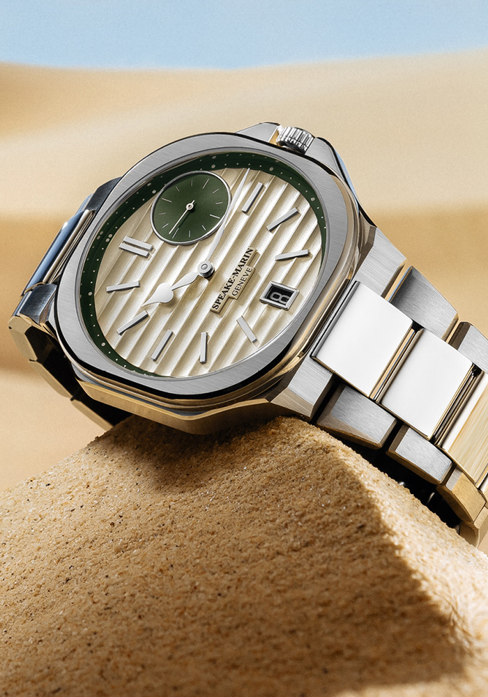 Speake-Marin has introduced "Ripples Dune date," a new variant characterized by a dial color evoking desert sands, continuing the brand's thematic exploration of vast, untouched landscapes. This model captures the essence of the desert, viewed not only as a physical space but as a realm of spiritual reflection and constant natural change. The "Ripples Dune date" is a testament to the brand's commitment to pushing design boundaries, appealing to those who seek to distinguish themselves and embrace the spirit of adventure.