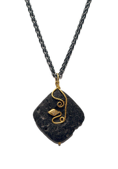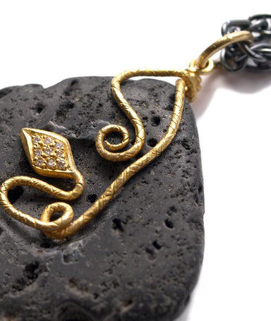 Lika Behar 24K Yellow Gold Lava Stone Diamond Snake Pendant