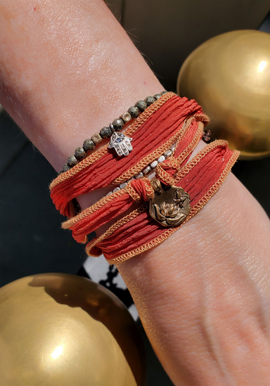 Vibrant red coral heishi beads evoke the spirit of the tropics on this dynamic Catherine Michiels Aida beaded bracelet that'll have you ready for y...
