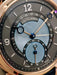 The smoothest retrograde ever? Take a look at the beautiful action of a Kari Voutilainen retrograde in action. Perfection. One-of-a-kind. 39MM Mother-of-pearl center, Guilloche surround. 18K Rose Gold on alligator strap.