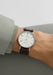 The NOMOS Tangente Neomatik Doré captures the perfect balance of precision and grace that defines Glashütte watchmaking. Its 35 mm stainless steel case, paired with a white silver-plated dial and golden thread hands, radiates understated sophistication. The slim profile, anti-reflective sapphire crystal, and clean typography give the Tangente its iconic Bauhaus-inspired look, timeless, minimalist, and effortlessly elegant. With the automatic DUW 3001 caliber at its heart, this neomatik model unites advanced German engineering with a subtle hint of luxury, making it equally suited for everyday wear or formal occasions.