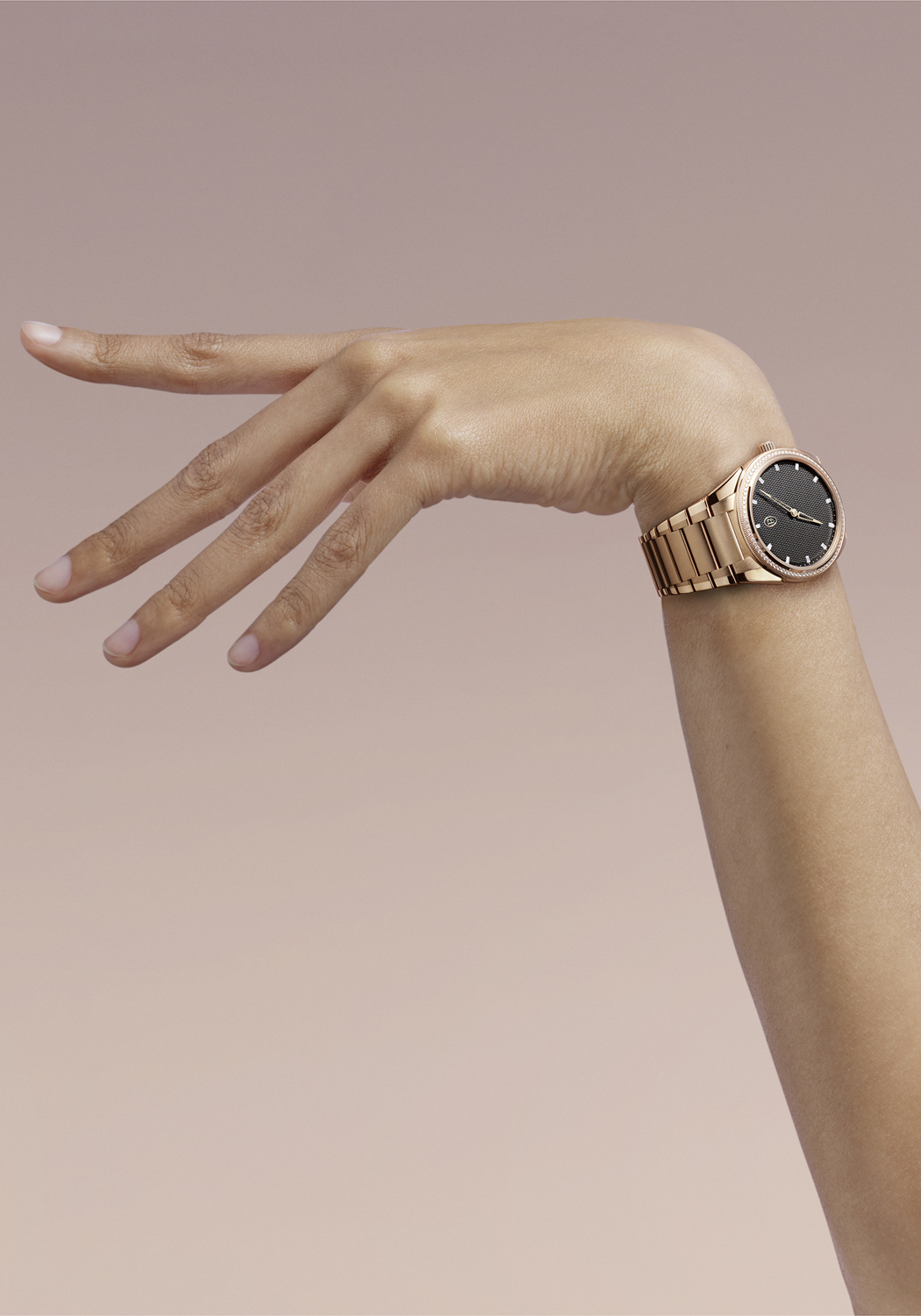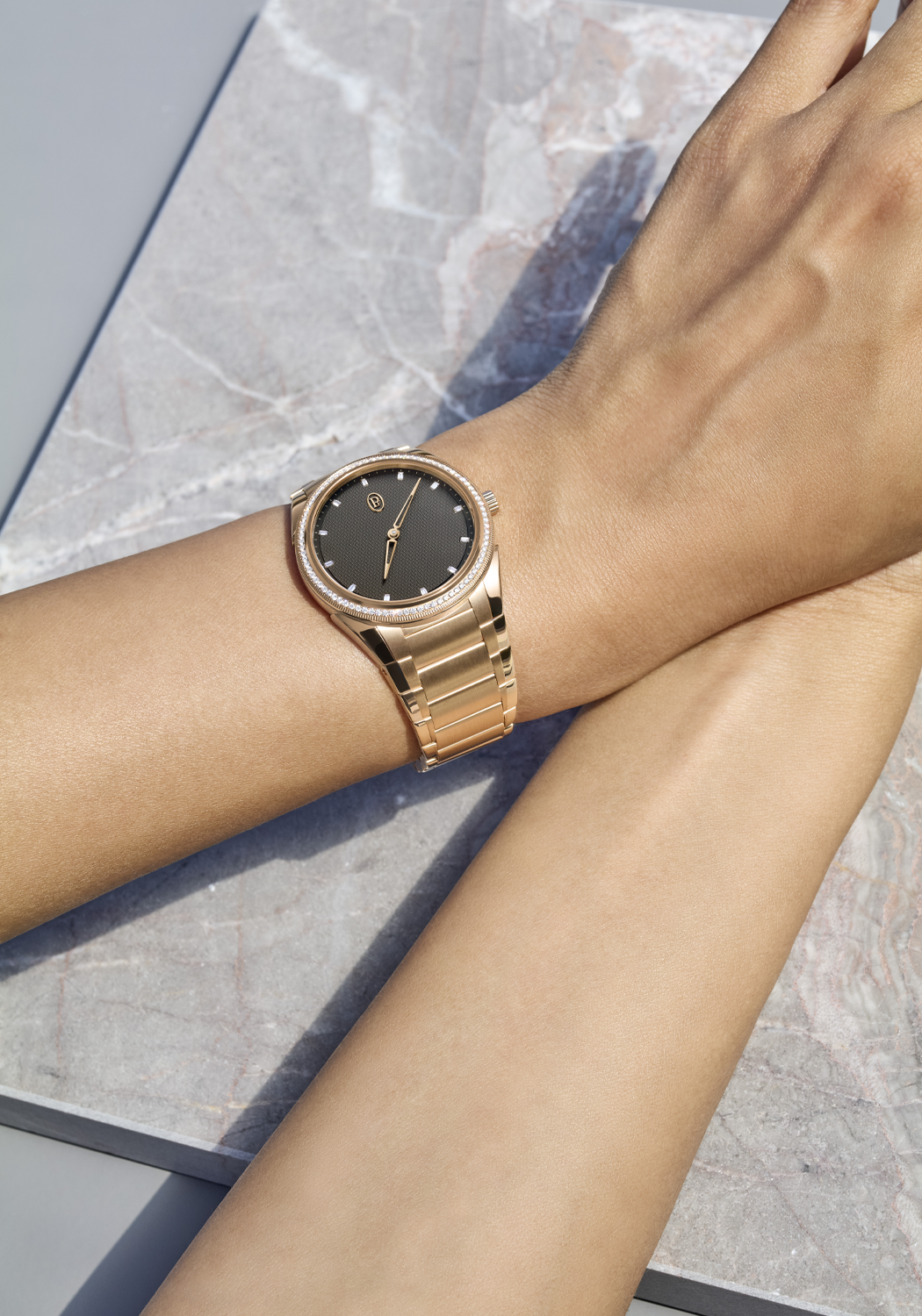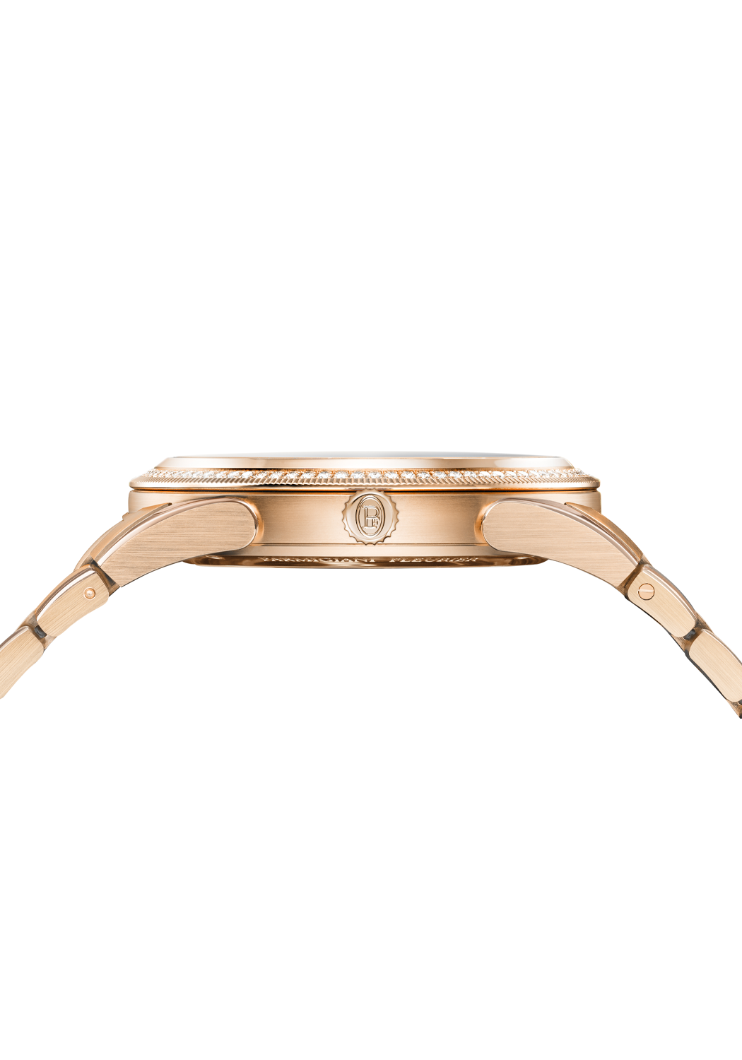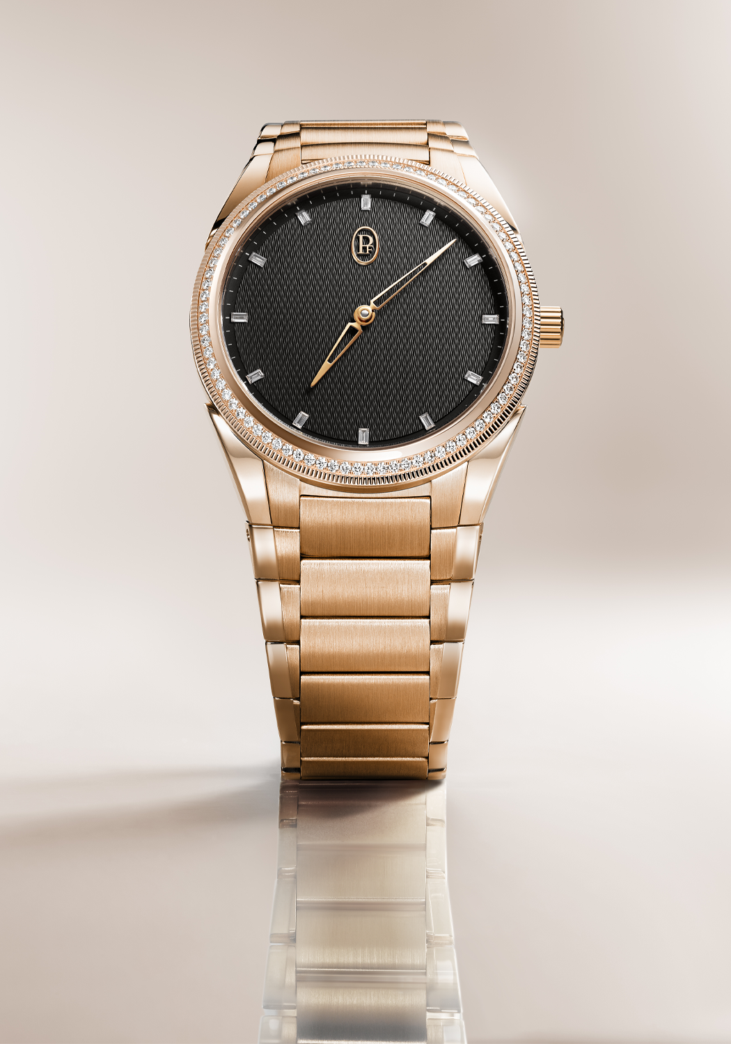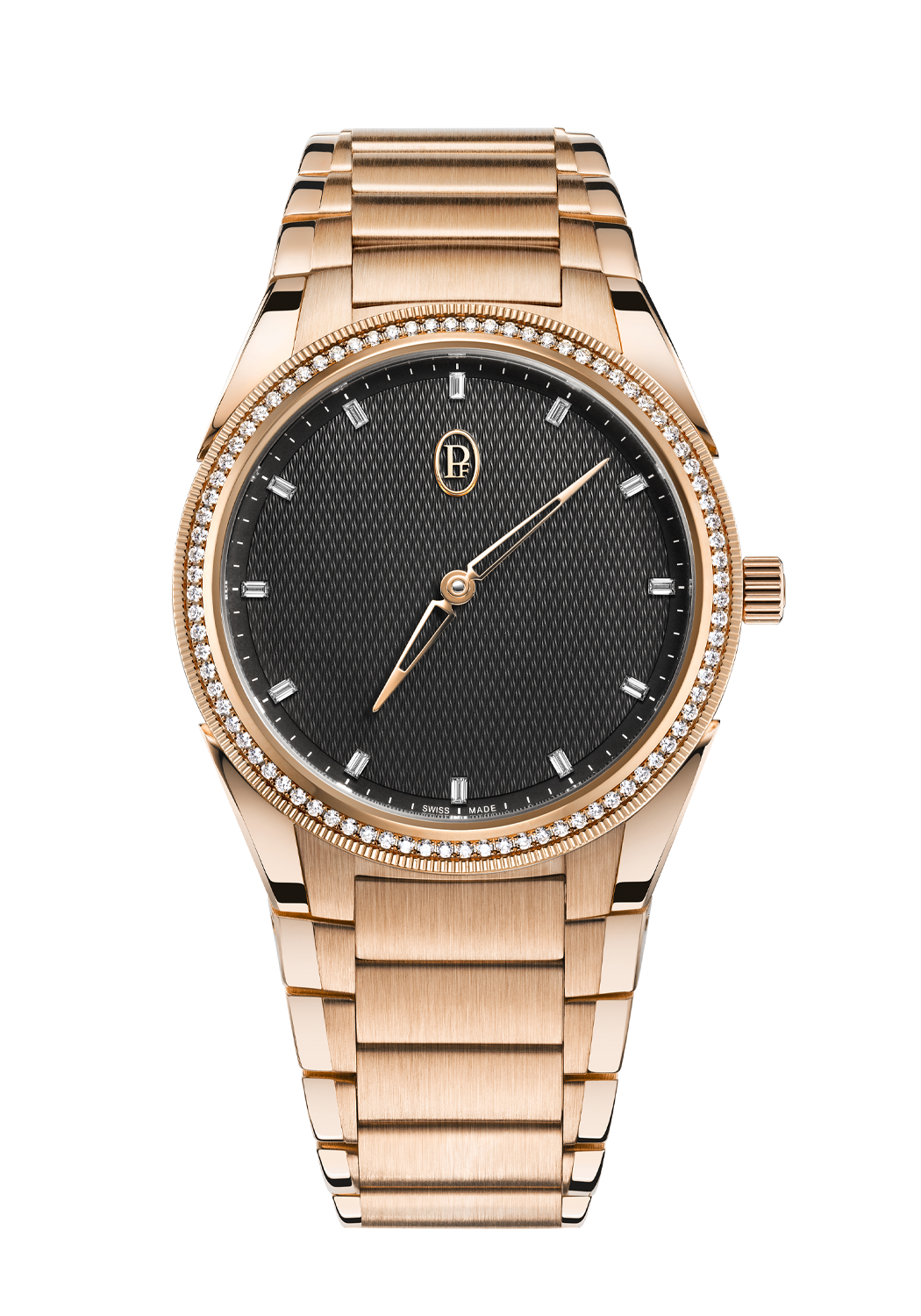 The latest Tonda PF Automatic 36mm watch collection embodies the brand's signature elegance, as seen here in the Warm Grey diamond set 18-carat pink gold edition with baguette-cut diamonds on the dial. These newest timepieces are crafted with subtle details that elevate them to works of art. Emphasizing refined aesthetic elegance, the Tonda PF Automatic 36mm adheres to the principle that essentials triumph over the superfluous. Their distinctive design ensures exceptional comfort while maintaining a unique and sophisticated identity women.