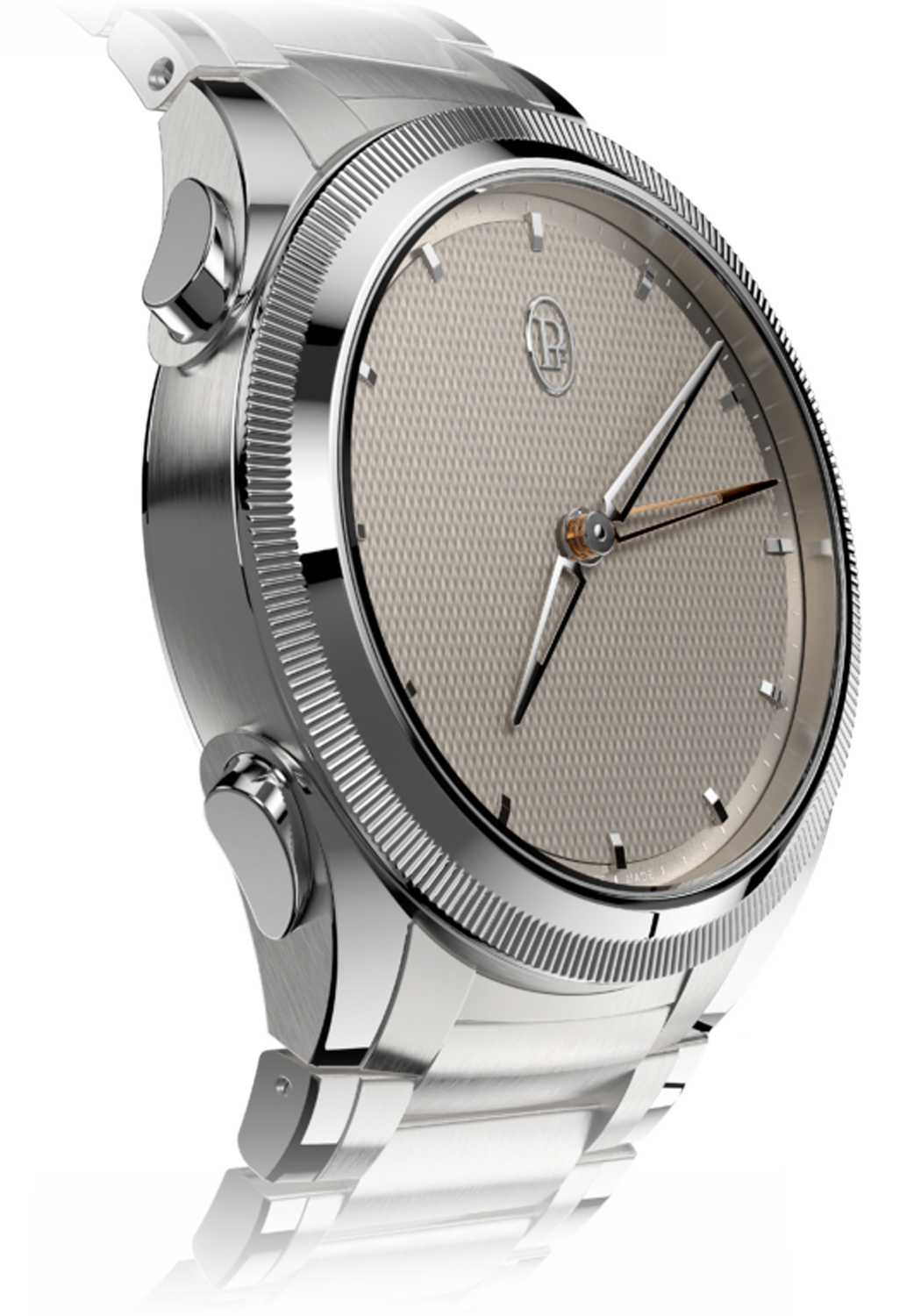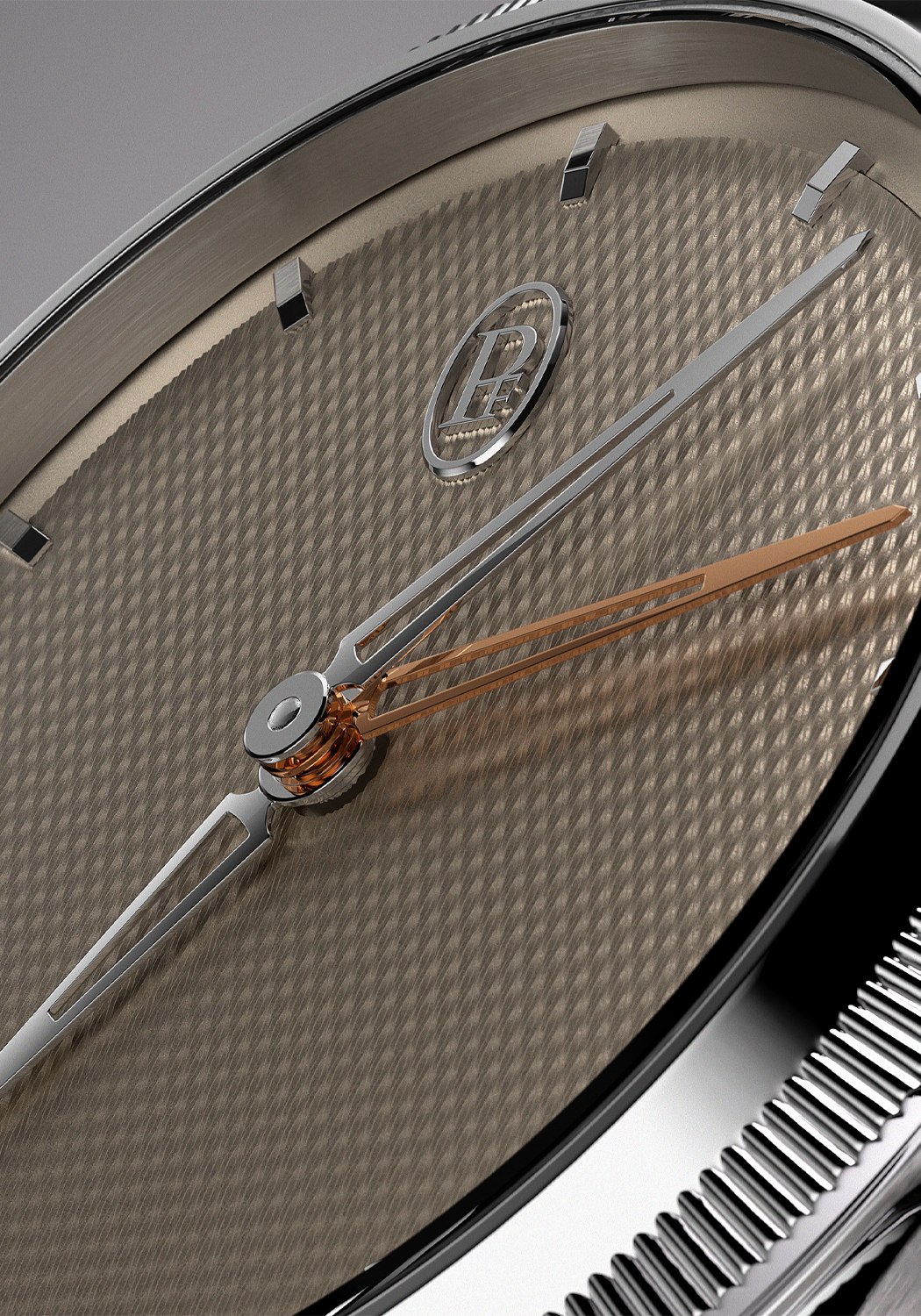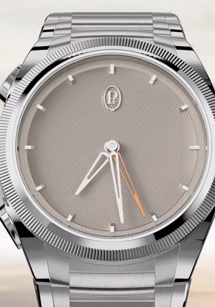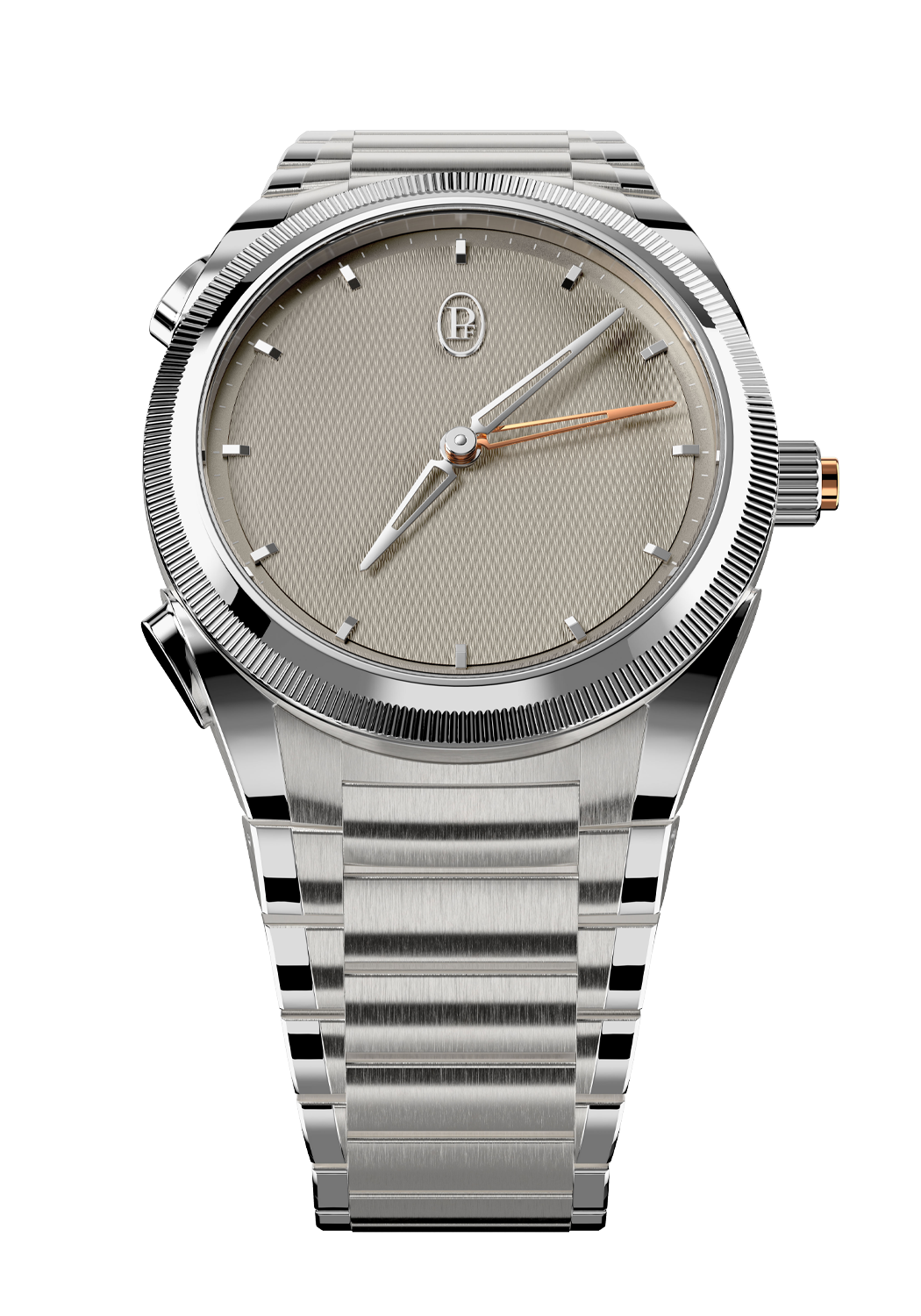 The dial retains the hallmarks of the PF Collection with its Grain d'Orge guilloché design in a warm sand grey. Skeletonized delta-shaped hands complete the dial including the hours and minutes, and an unexpected third hand shows off the rattrapante feature in 18k rose gold. Dual pushers control the rattrapante minute hand with a five minutes pusher situated at 8 o'clock, and the one minute pusher at 10 o'clock. Time is precious and the Parmigiani Fleurier Tonda PF Minute Rattrapante makes sure you hold onto every second of it.