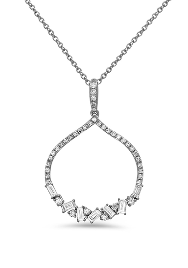 This spectacular Dilamani pendant necklace is composed of exquisite baguette and round white diamonds set in 14k white gold. Suspended from a 16" c...