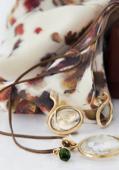 A sweet lotus pendant in brushed 18k yellow gold holding onto a smooth serpentine pod. Charlotte Lynggaard’s lifelong romance with precious stones ...