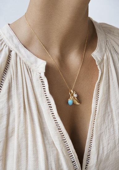 A sweet lotus pendant in brushed 18k yellow gold holding onto a smooth London blue topaz pod. Charlotte Lynggaard’s lifelong romance with precious ...