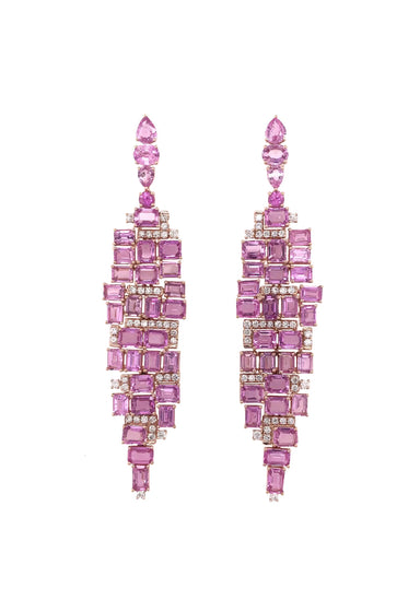 Absolutely Stunning on! The Ruchi 18K Rose Gold Pink Sapphire Chandelier Earrings are a breathtaking display of luxury and elegance. Accented with ...