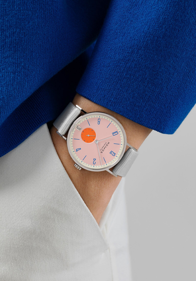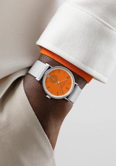 Cosmopolitan, smart, with plenty of contemporary flair—that is Metro. The unique, patented NOMOS ring date in neon orange is a sign of new times to...