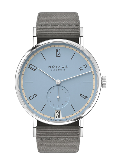 The NOMOS Tangente 2Date shown here with a galvanized blue silver-plated dial, is a timepiece that captivates with every glance. Its 37...