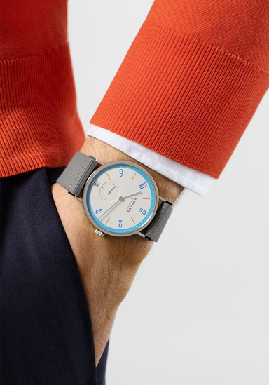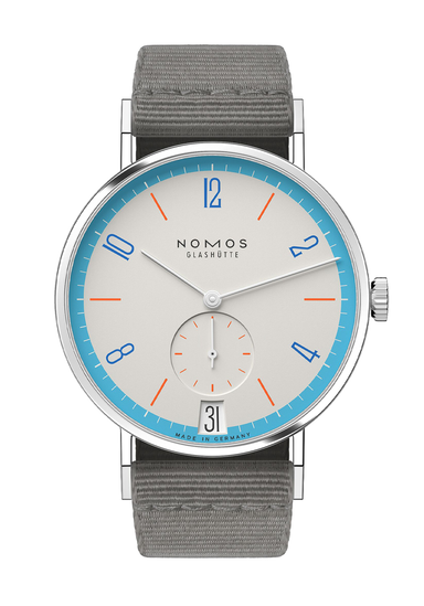 Tangente Sport—here in the version with a marine white dial—is more robust than any previous NOMOS watch. The neomatik date caliber, DUW 6101, is p...