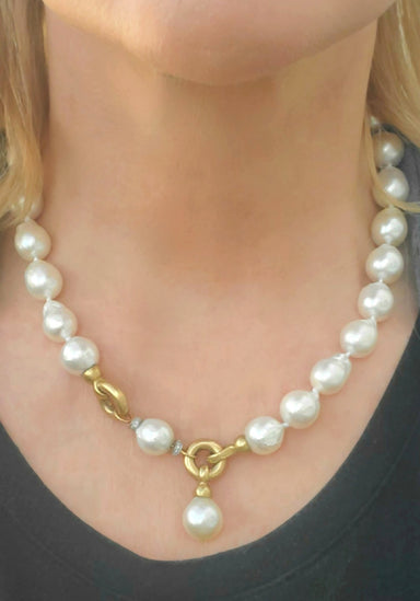 The Oster Collection 18K Yellow Gold Adjustable Diamond & Baroque Pearl Necklace exudes timeless sophistication. Featuring luminous Baroque pea...