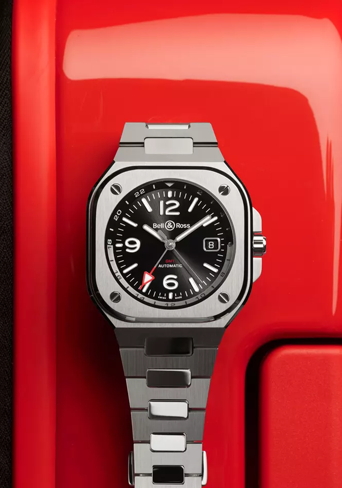 Bell & Ross offers a more urban interpretation of travel and time with its first dual time zone model in its 05 range. A distinctive design inspired by the professional world of tools designed for a specific mission. An elegant and ergonomic steel timepiece-armor. The engine set to two time zones. These are the codes of the new instrument of the urban explorer. The BR 05 GMT is designed to travel and accompany the transition between different urban realities. It is the ultimate globe-trotter’s tool.