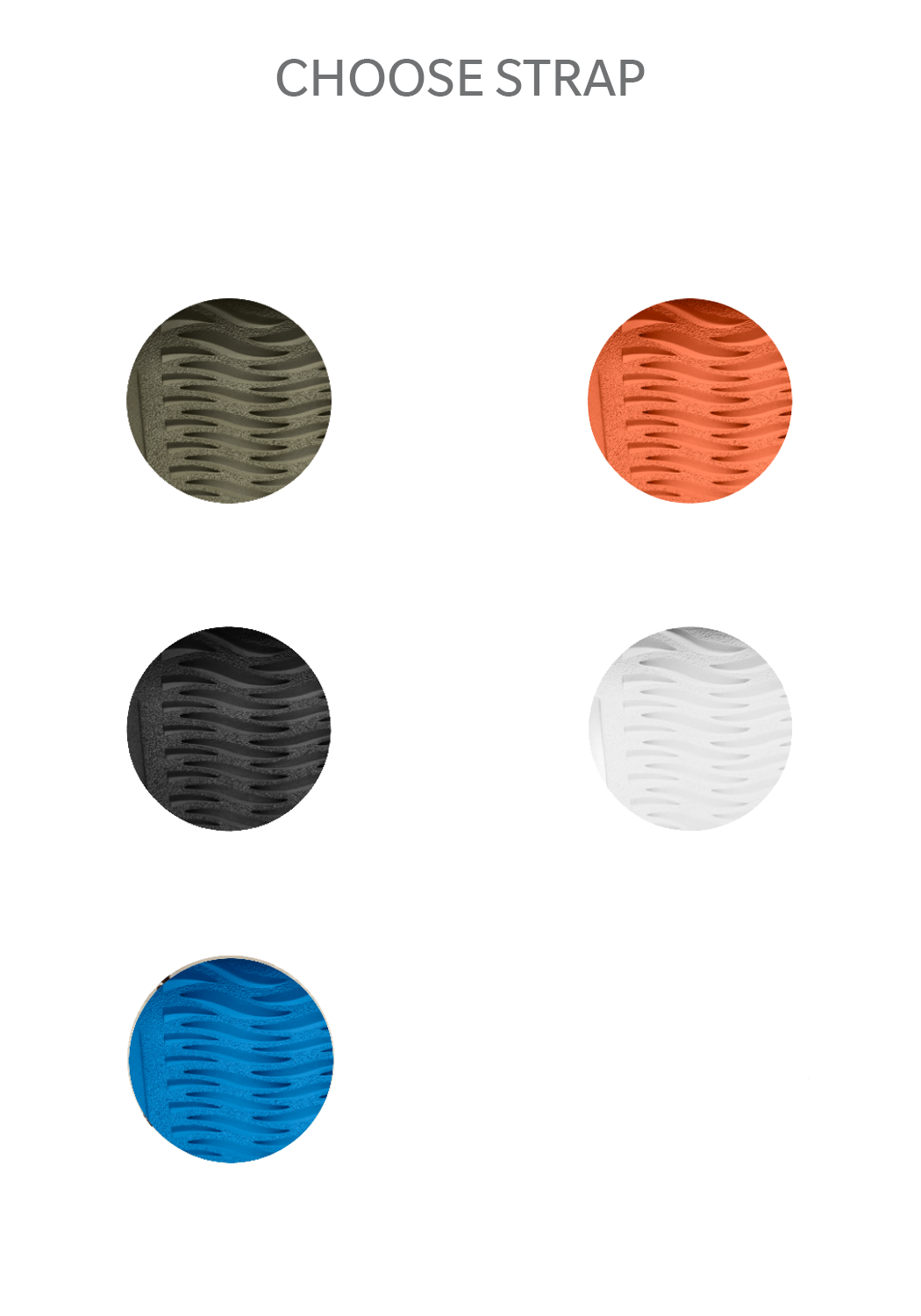 Rubber Strap Options: Olive, Blue, Orange, Black, White