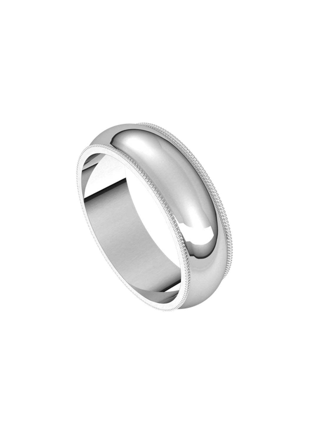 Polished 14k white gold radiates sophistication in this classic men's wedding band. Featuring an intricate milgrain finish along the edges, this ring offers a timeless elegance that captures both tradition and refinement.