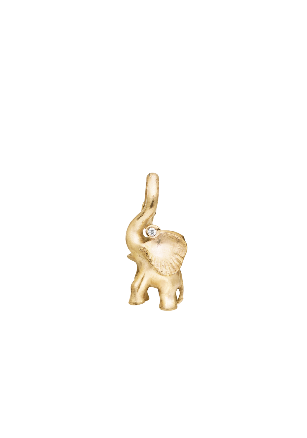 is medium sized Ole Lynggaard Circus Diamond Elephant Charm Pendant features the treasured trumpeter in 18k yellow gold, cradling a single diamond beneath its trunk. The elephant is a symbol of wisdom, loyalty, strength, and happiness. Ole Lynggaard's exquisite craftsmanship is magnificently displayed in the nuanced detailing that brings the personality of this wonderful creature to life.