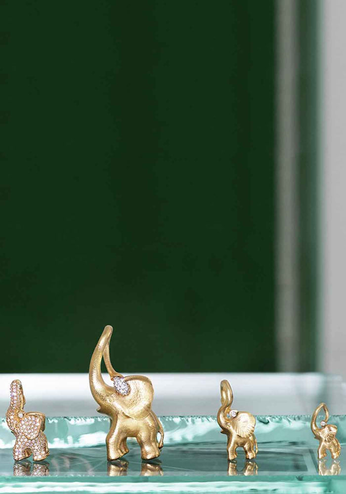 Ever since his youth, Ole Lynggaard has been fascinated with the gracious movements of elephants. Developing various elephant designs over the years, the brand founder was proud to introduce the collection of naturalistic elephant pendants at his 80th anniversary in 2016. All crafted from 18k gold and crisp white diamonds.