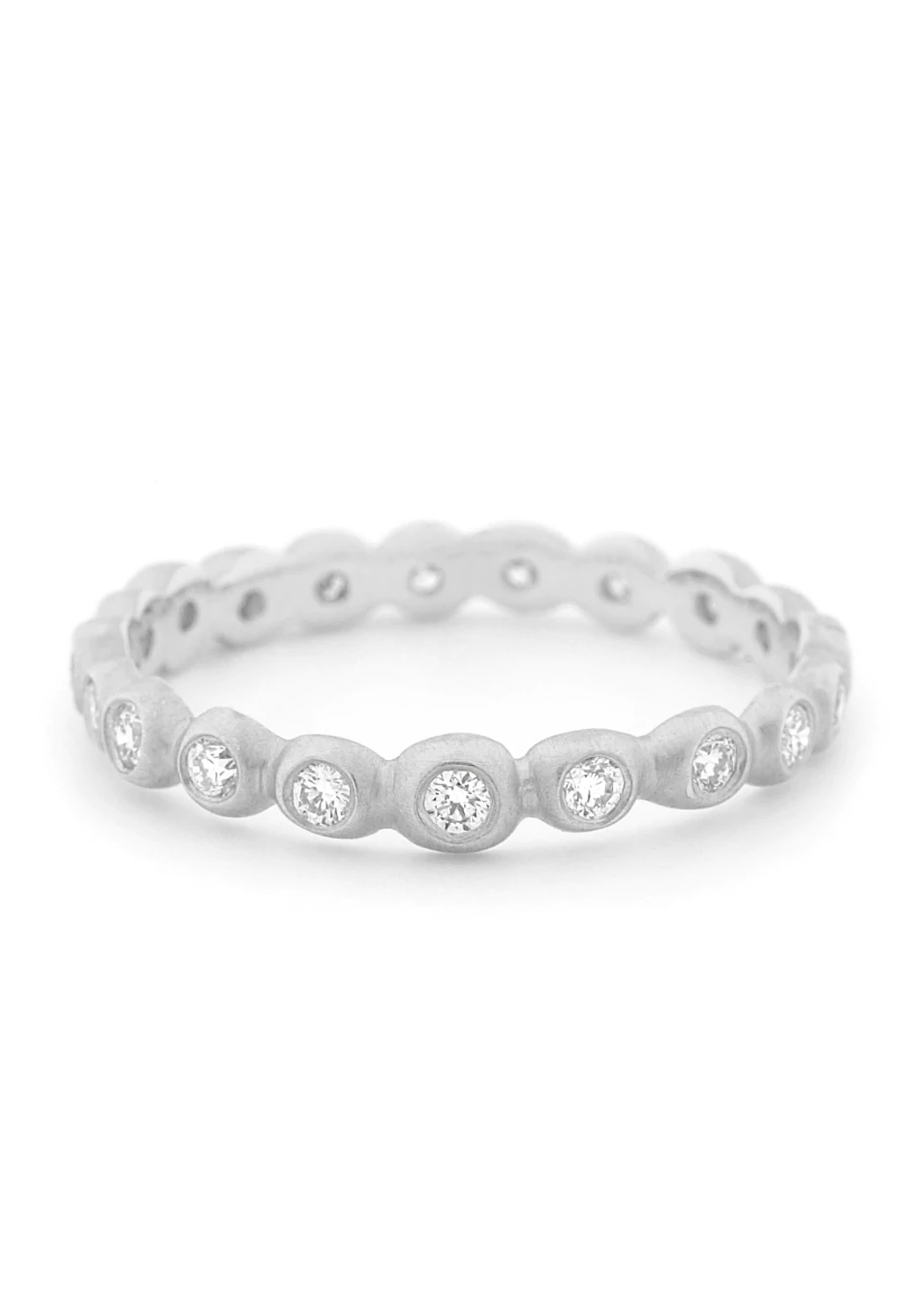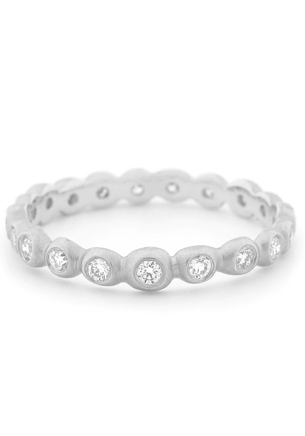 Tiny sparkling diamonds bring light to 14k white gold seeds to wrap around the finger on this delicate Anne Sportun diamond seed band. Each seed of gold is set with a 0.01ct G, VS diamond, whose incredible sparkle give a sense of liveliness to the design. This Anne Sportun diamond eternity band can also be worn individually for a simply elegant look, or mixed and matched to create a unique ring stack. This band is also available in different metals, call for availability.