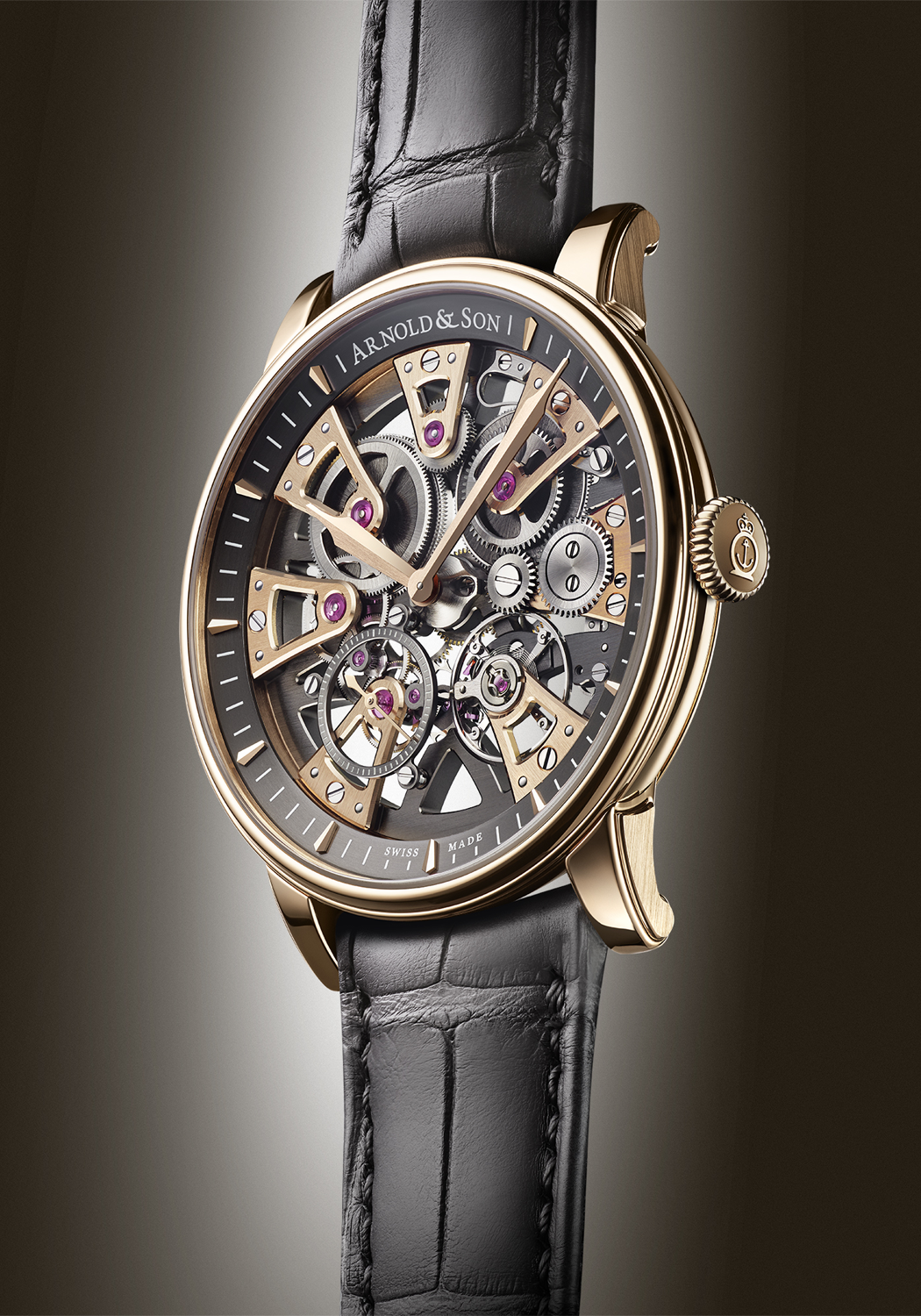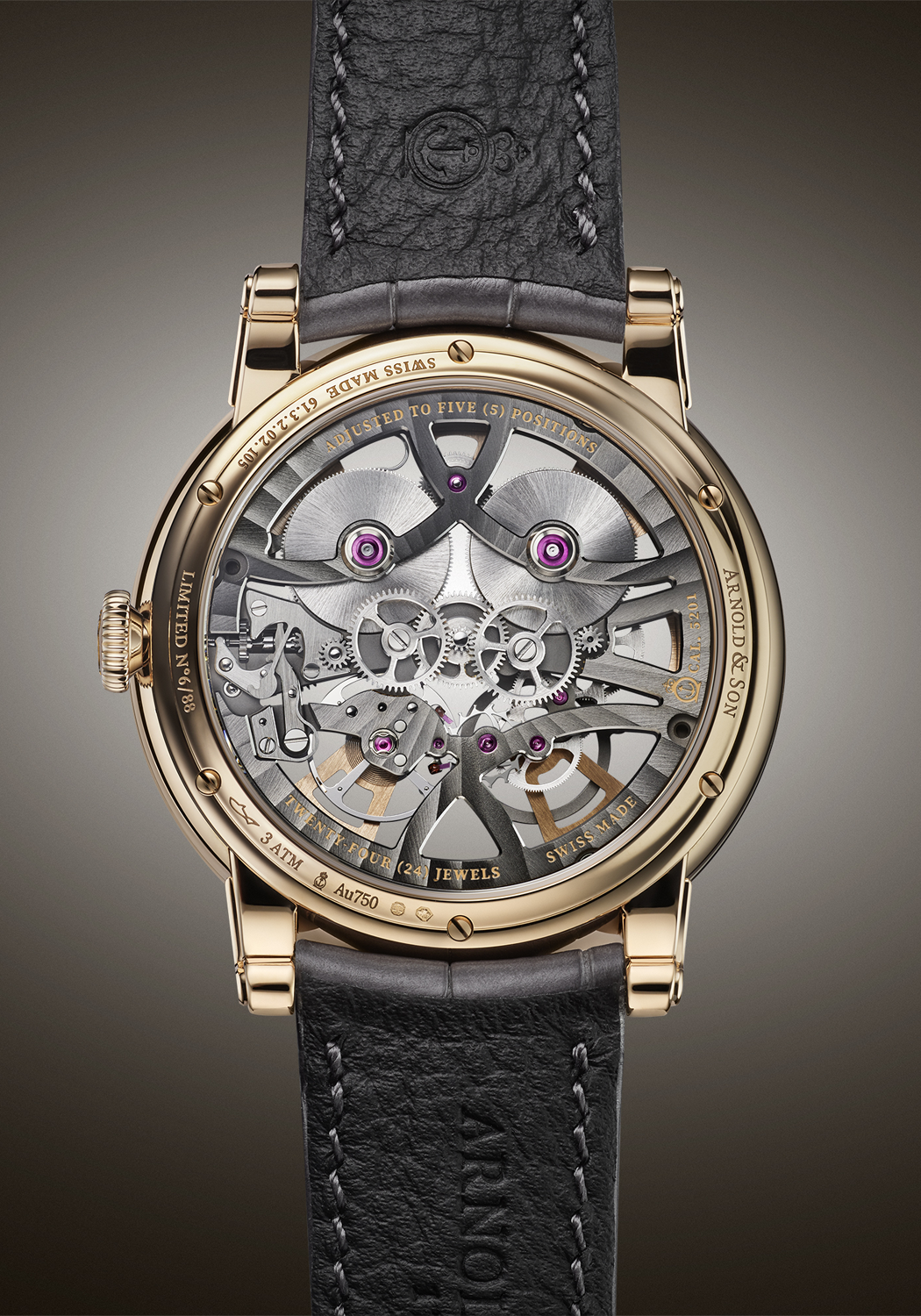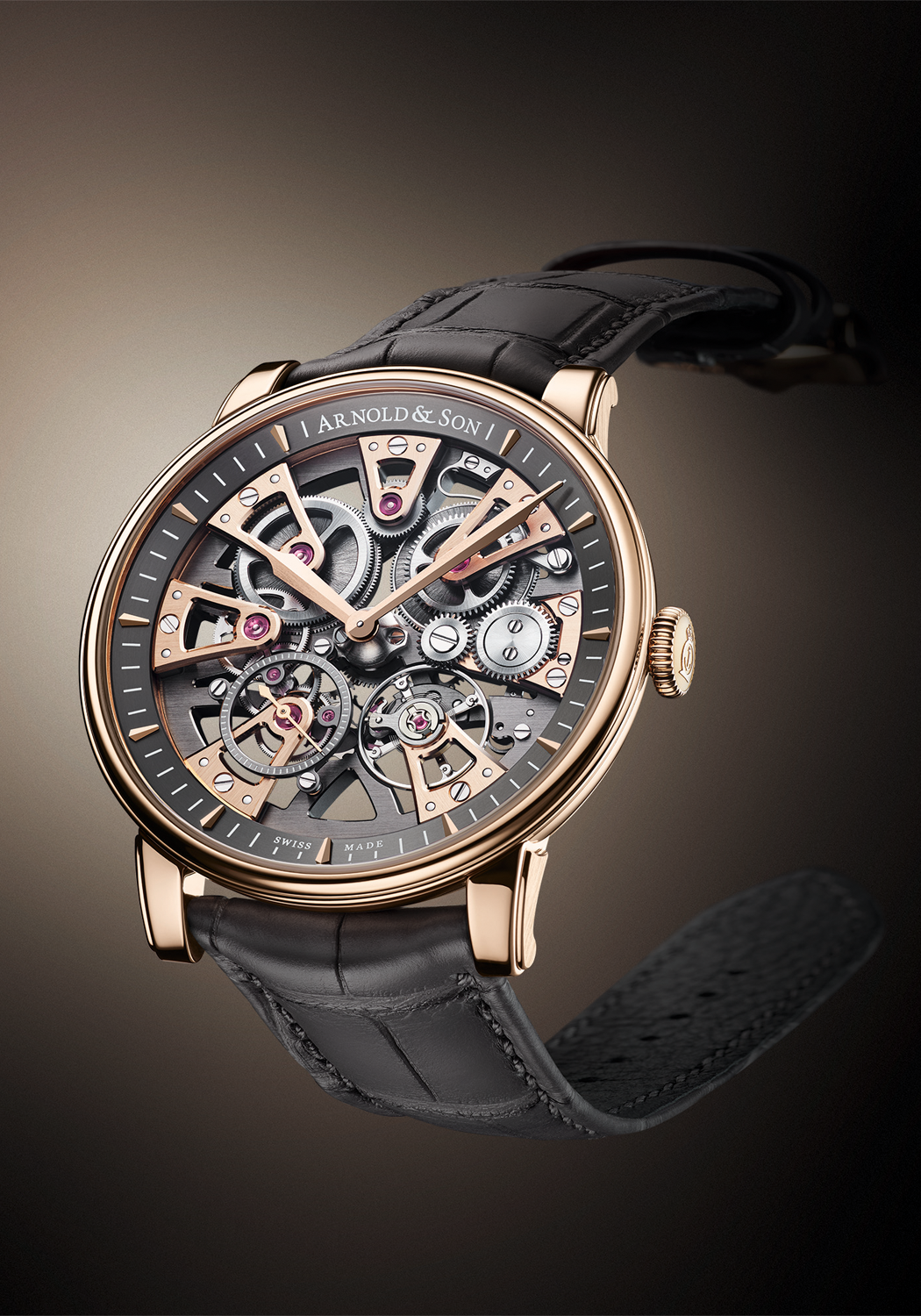 Powering this stylish timepiece is the A&S5201 calibre which was conceived from the ground up to be a skeleton mechanism, allowing a clear view of the movement from every angle. From the front the skeleton dial gives an unobstructed view of the star-like pattern formed by its seven bridges radiating outwards. On the reverse, "Rayons de la Gloire finishing brings dimension to the main plate. The accents of grey on the dial carries through even to the wrist with a complementing hand-stitched alligator leather strap, complete with a 5N gold pin buckle.