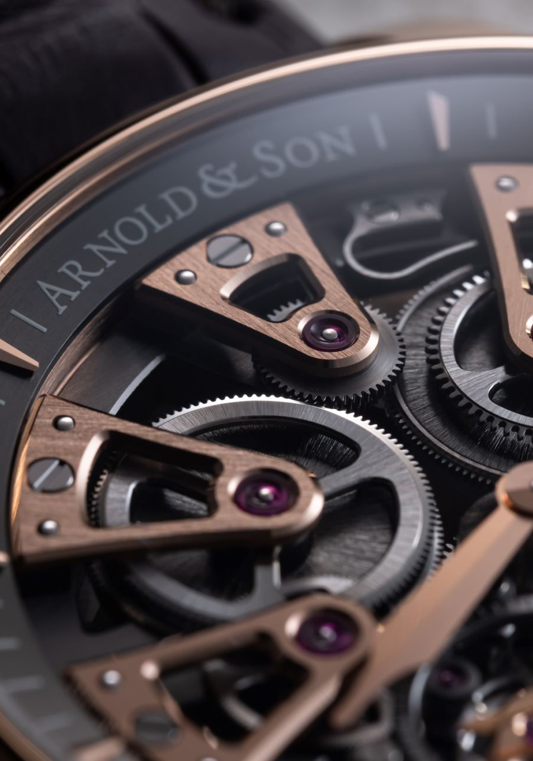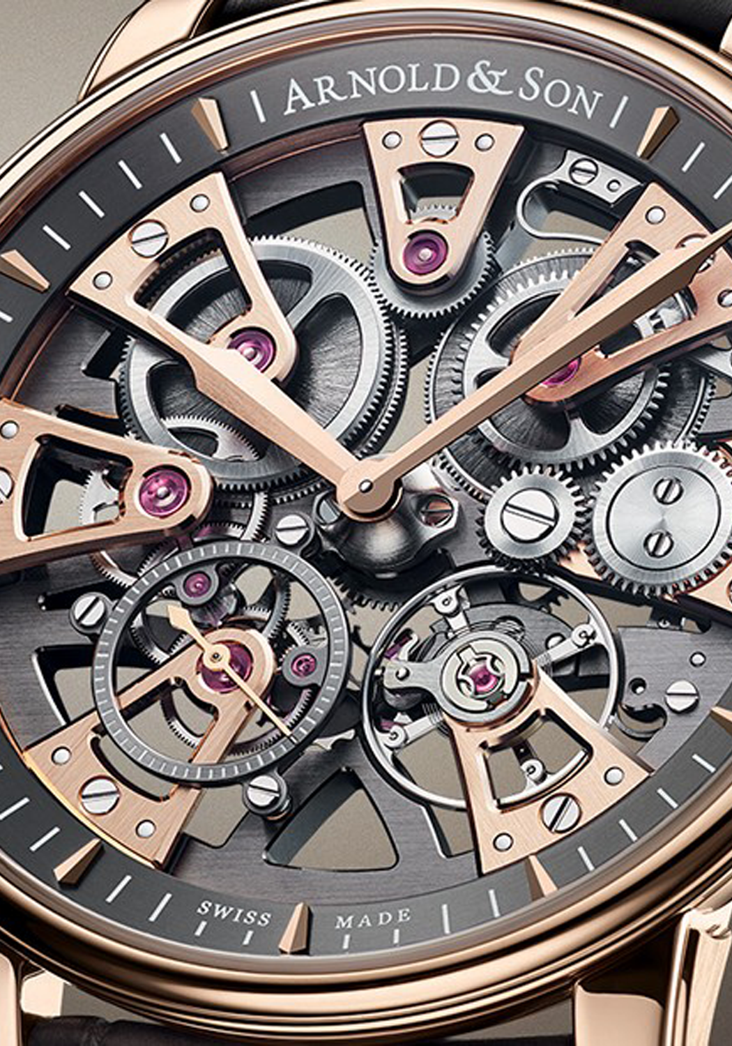 A cosmic explosion in gold and grey, the Arnold & Son Nebula 41.5 Gold is a fully equipped powerhouse of a watch with an open-worked display. The symmetry of this timepiece is an integral part of its design, with every detail considered to achieve balance and harmony visually. Beyond its sleek and impressive display, this watch is also highly functional with its incredible 90 hour power reserve, only requiring hand-winding every three and a half days.