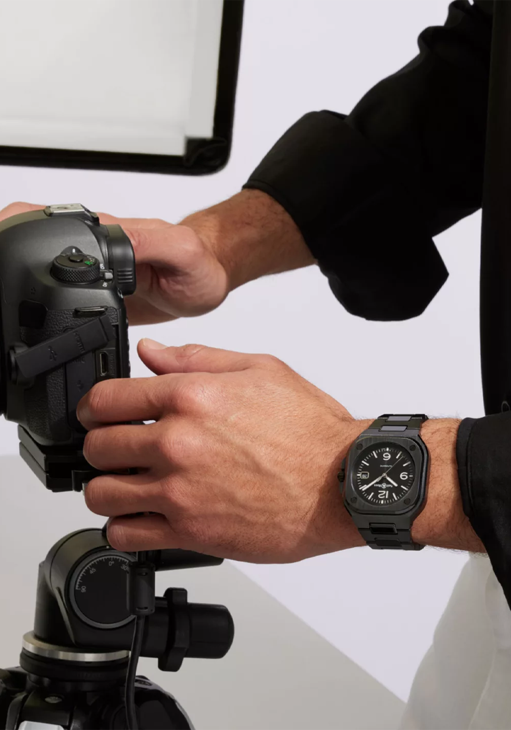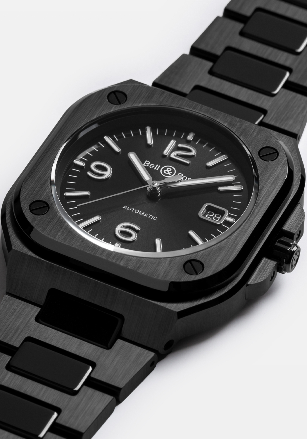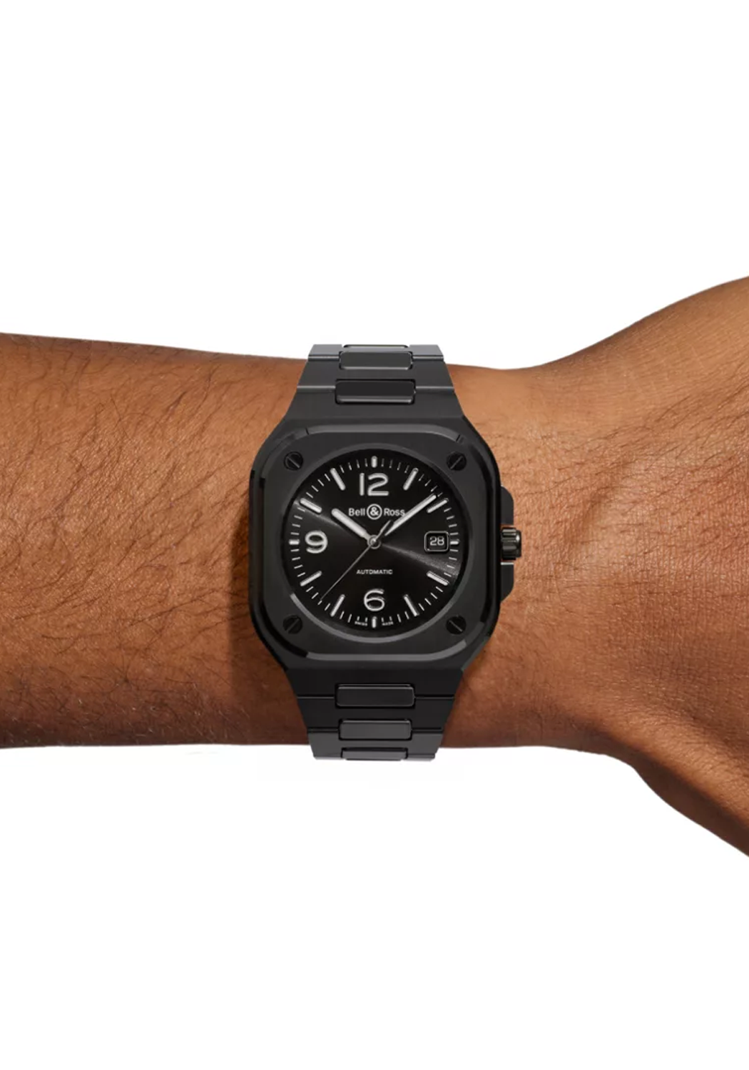 The Bell & Ross BR 05 Black Ceramic, inspired by robust dashboard designs, showcases the brand’s iconic black color and is masterfully crafted from ceramic—a material celebrated for its durability and technical sophistication. To enhance the visual impact and counter the dimension-altering effects of black, Bruno Belamich, Creative Director and co-founder of Bell & Ross, subtly enlarged the design to introduce the first BR 05 auto self-winding models with a bold 41-mm case, making a powerful statement in watch design.