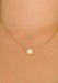 Creamy white agate is framed by a halo of diamonds set in 18k yellow gold on this vintage inspired Carla Amorim pendant necklace. The 17" long delicate chain is attached with a lobster claw clasp. The pendant measures 1/2" and is set with .13ctw sparkling diamonds.