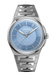 Sashiko, the latest follow up of the 2022 Czapek Antarctique S, fuses Japanese aesthetics with a vibrant pop of color. The intricate Sashiko Azure dial is inspired by its namesake, a Japanese sewing technique that translates to "little stabs," resulting in a three-dimensional silhouette that plays with light and color across the blue dial with every movement. The hour markers shine in luminescent metal (as shown), and are also available with diamonds upon inquiry.