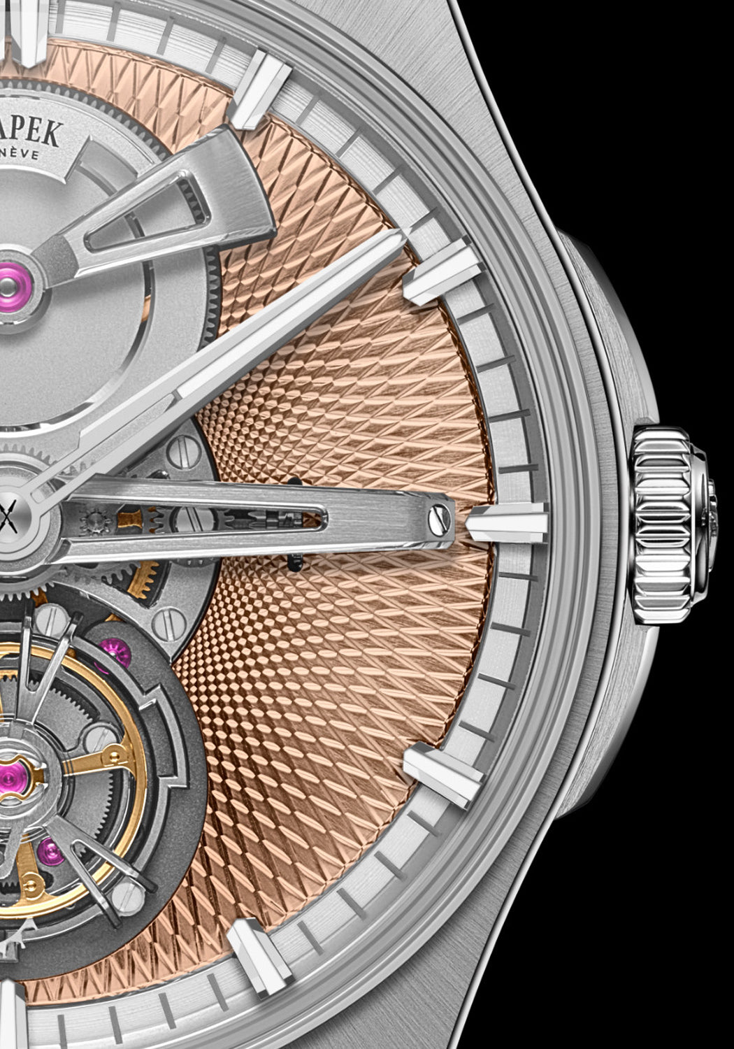 - Hand-guilloche, registered ‘Singularity’ dial in 401 ‘Secret Alloy’ with PVD-made 5N gold hue