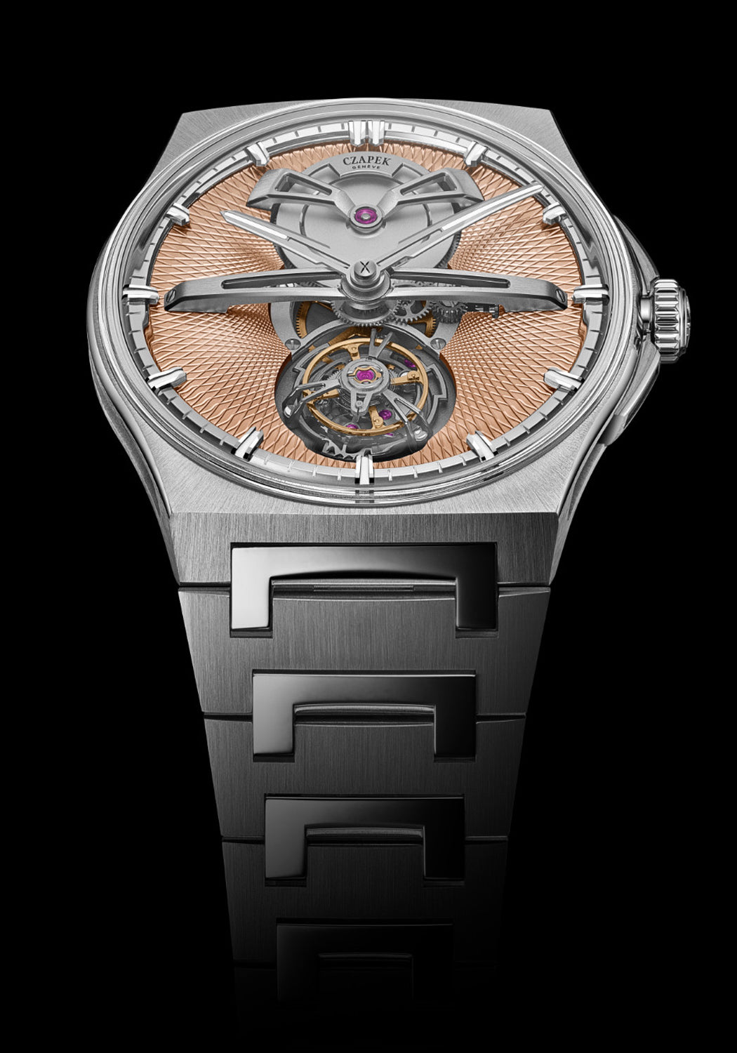 - Calibre 9: Czapek's manufacture tourbillon movement, mechanical with automatic winding
