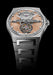 Offered in Secret Alloy grey (available in just 50 pieces), Glacier Blue, and Photon Sphere (shown here with a rich 5N gold hue), and Glacier Blue (shown here). The Antarctique Tourbillon’s stainless-steel case has been refined to complement its curvilinear aesthetic, featuring subtly raised sapphire crystals for a floating effect. Even the gold winding rotor is convex and hand-engraved with a black-hole-inspired motif. Completing the timepiece is a stainless-steel bracelet with a micro-adjustment system and a quick-change mechanism, along with an additional rubber or leather strap, ensuring versatility without compromising luxury.