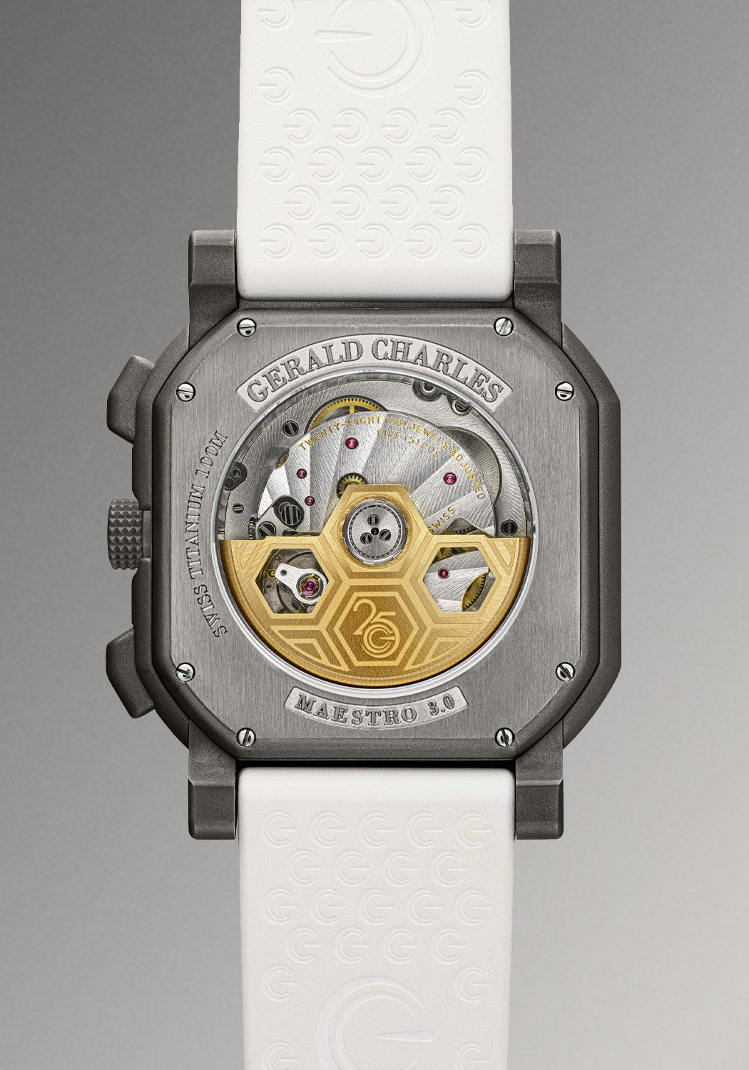 At the heart of this masterpiece lies the Swiss Manufacture 3.0 caliber, boasting a slim 6.07mm profile and a 50-hour power reserve. This high-precision movement features three chronograph counters—60 seconds at 3 o’clock, 12 hours at 6 o’clock, and 30 minutes at 9 o’clock—ensuring seamless functionality. The transparent case back reveals the movement’s intricate craftsmanship, showcasing bridges decorated with colimaçon, côtes de Genève, and perlage finishes. A golden oscillating weight, adorned with the 25th Anniversary logo and honeycomb motif, adds a refined touch. Built for endurance, the Maestro 3.0 Chronograph withstands 5G shock resistance, incorporating an Incabloc® anti-shock system for superior performance. With its fusion of architectural artistry and cutting-edge horology, this timepiece stands as a true testament to Gerald Charles' watchmaking excellence.