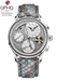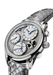 - Stainless steel base with rhodium plated-sub-dials and elements frosted and satin-grained surfaces.