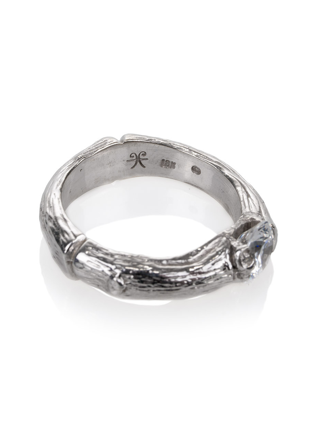 From the Twig Collection, this is a beautiful 18k white gold semi-mount diamond engagement ring just waiting for the perfect stone. The organic spirit of K. Brunini is captured through its artful design that channels the eternal "Tree of Life." A perfect unique engagement ring for individuals looking for something different.