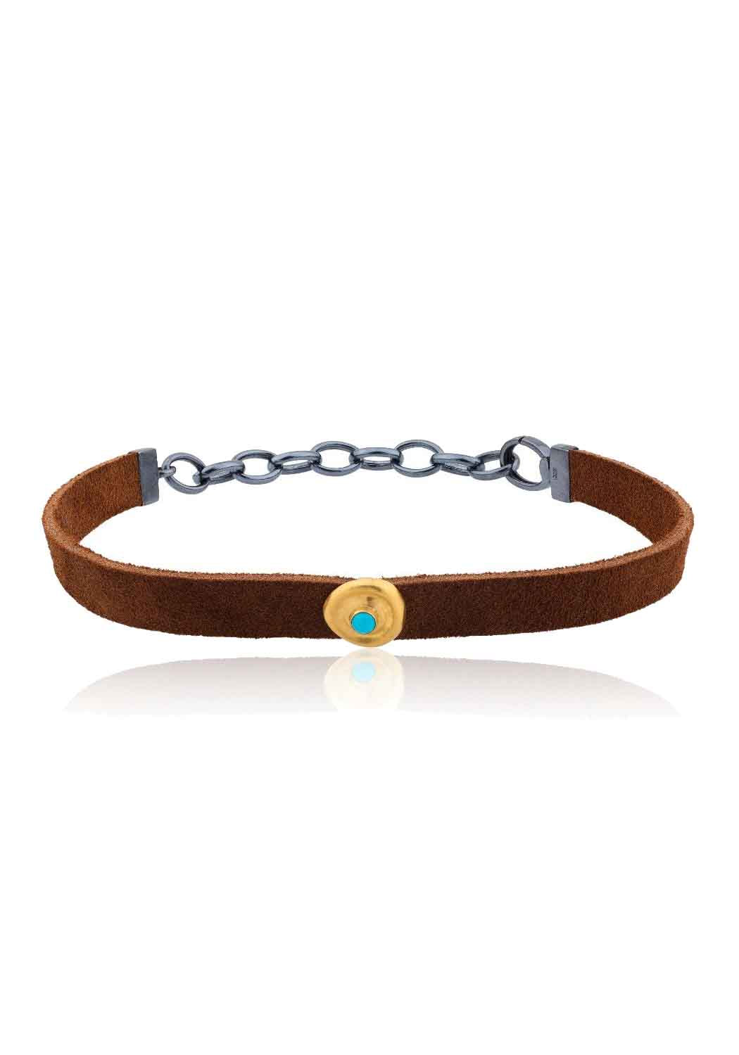 Lika Behar 24KYG & Suede Rondette Turquoise Choker