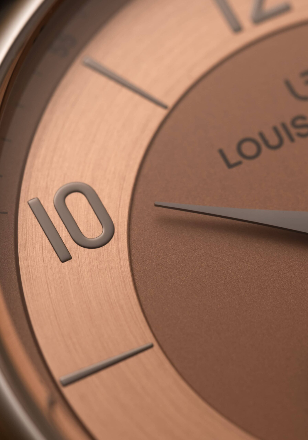 With a handsome matte finish on the earthen inspired terracotta dial, no shine nor burst of light breaks the muffled accords. The clever use of monochrome brings out the subtleties of the design, contrasting the circular satin finish on the fine grain of the centre and minute track sections. Highlighting of the snailed seconds counter at 6 o’clock brings a welcome contrast to the Louis Erard Excellence Petite Seconde Terracotta dial. Natural colours. Matt textures.