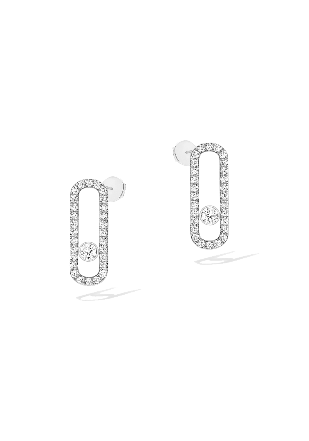 Craving a touch of glamour to elevate your style? This fresh take on the iconic Move Uno diamond earrings sparkles with fine pavé-set diamonds. The innovative alpha closure system makes for a flawless fit. With a modern, graphic design, these earrings are the perfect finishing touch for any look, adding a subtle yet dazzling elegance.