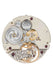 - Balance cock and crown wheel, intermediate winding wheel and ratchet wheel with stopwork on the modified spring barrel bearing with a gold chaton in the ratchet wheel