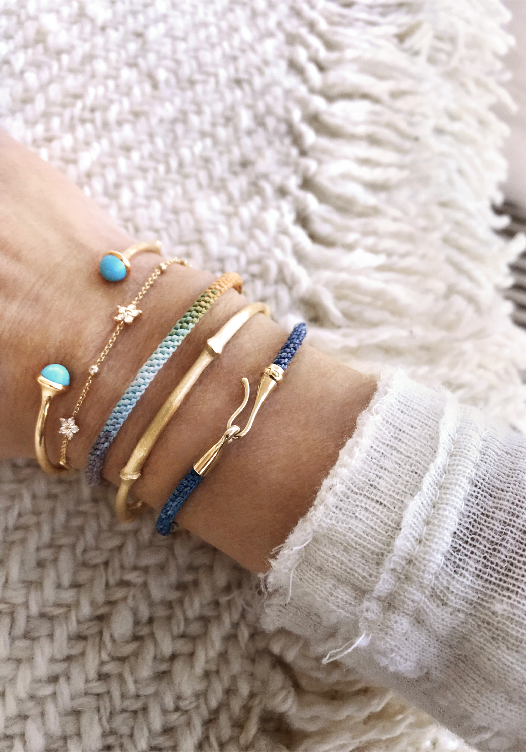 Make a wish upon a star with this Ole Lynggaard Shooting Stars 18k yellow gold 5 star diamond bracelet. Five sparkling stars made with 35 diamonds bring a twinkle to this delicate bracelet with a carabine clip. Mix and match it with Ole Lynggaard life rope bracelets and Nature cuffs, or wear it with a Shootings Star ring and set of stud earrings for a classic look.
