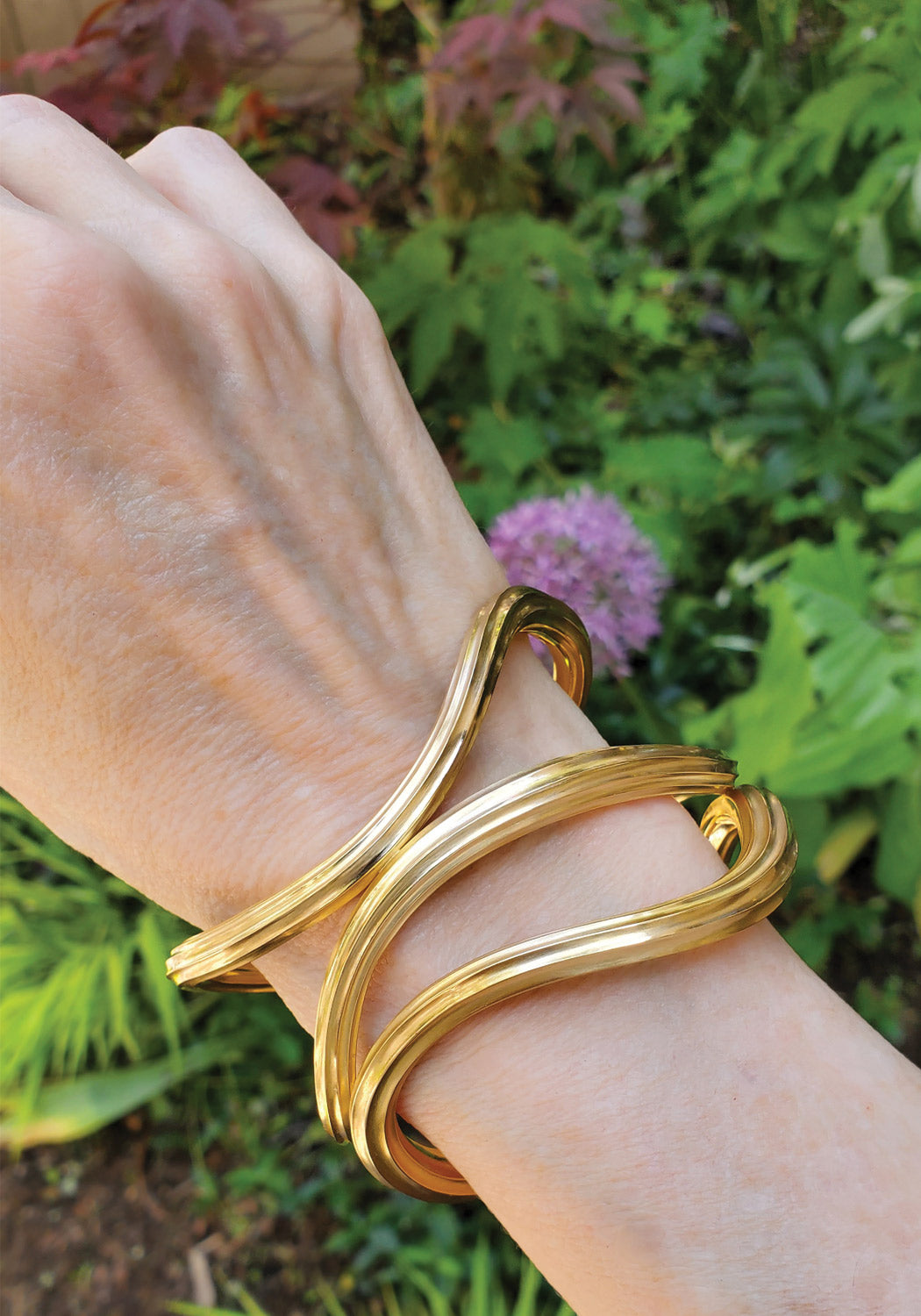 Designed by Sofia Lynggaard Normann, the Under the Sea triple bangle is an exquisite piece crafted from 18k yellow gold. Inspired by the ocean's organic movements and the intricate structures found in the sand, this bangle captures the essence of the sea's natural beauty. Part of the Under the Sea collection, its flowing shapes and textured surfaces evoke a sense of elegance and fluidity. This stunning bangle embodies both artistry and sophistication, making it a captivating addition to any jewelry collection.