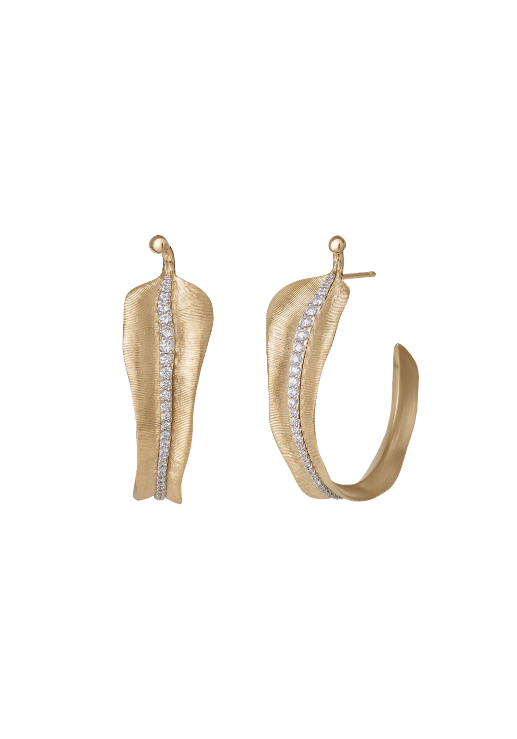 Ole Lynggaard Leaves 18KYG Creol Diamond Leaf Hoop Earrings | Large