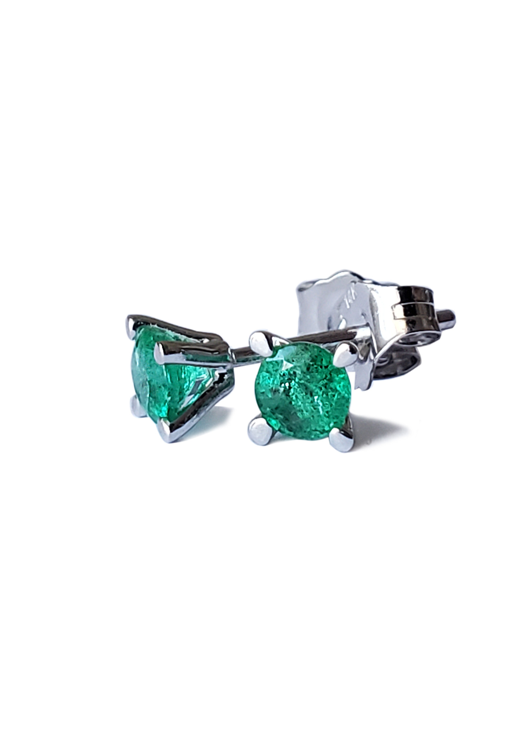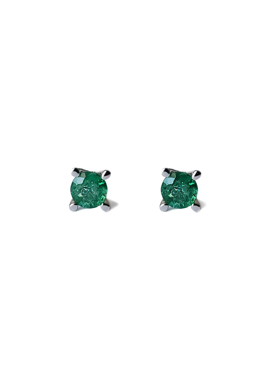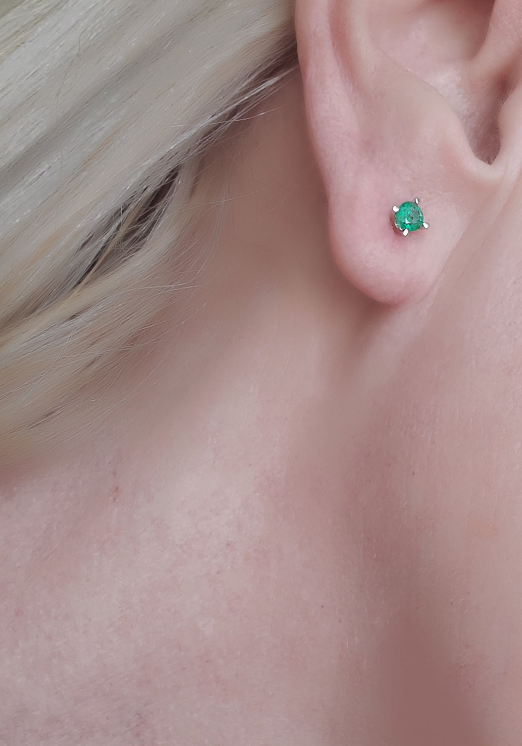 Bring understated elegance to the ears. These 14k white gold mini emerald stud earrings are a timeless addition to your jewelry collection that adds a touch of sophistication to any look. These exquisite studs feature vibrant emeralds, prong set in sleek white gold, offering a subtle yet captivating sparkle. Perfectly sized for versatility, they can be accented with earrings in a 2nd or 3rd piercing for a dynamic look that shows off your personalized style. Whether you're adorning your ears for a day at the office or a night out, these emerald studs provide a delicate hint of color and elegance, making them an ideal choice for those who appreciate the beauty in simplicity and the art of layering fine jewelry.
