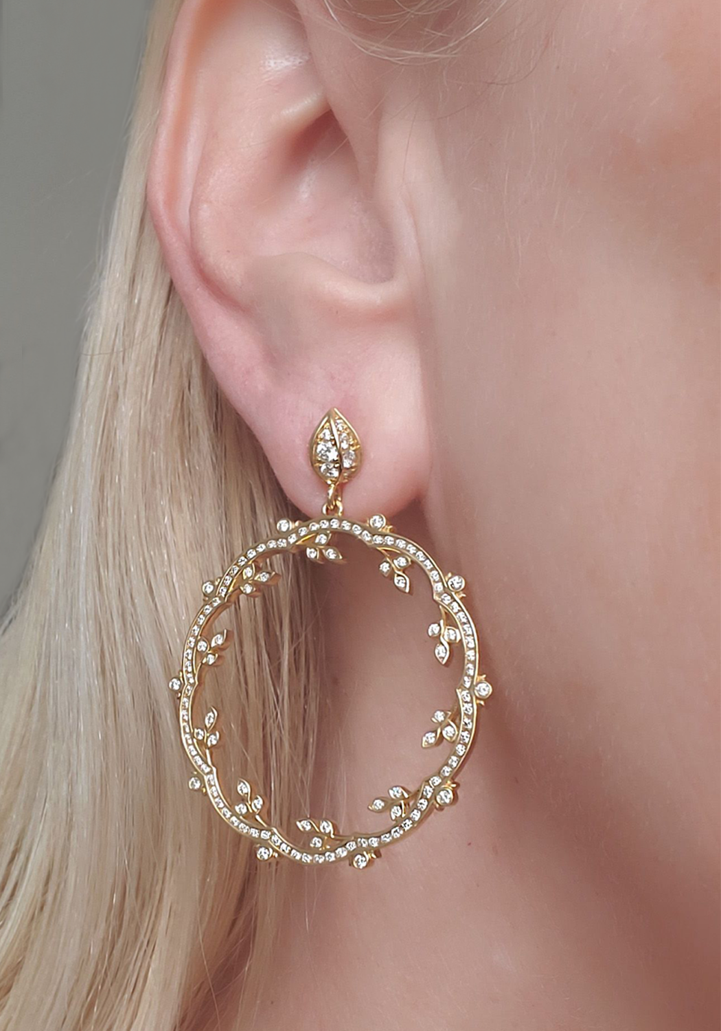 These stunning earrings are a celebration of nature's effortless elegance, designed to transition seamlessly from everyday wear to the most refined of occasions. Whether you're adorning them for a casual brunch under the open sky or a sophisticated evening affair, these diamond wreath hoop dangle earrings promise to bring a touch of serenity and a dash of luxurious sparkle to your look, making them an indispensable addition to your jewelry collection.