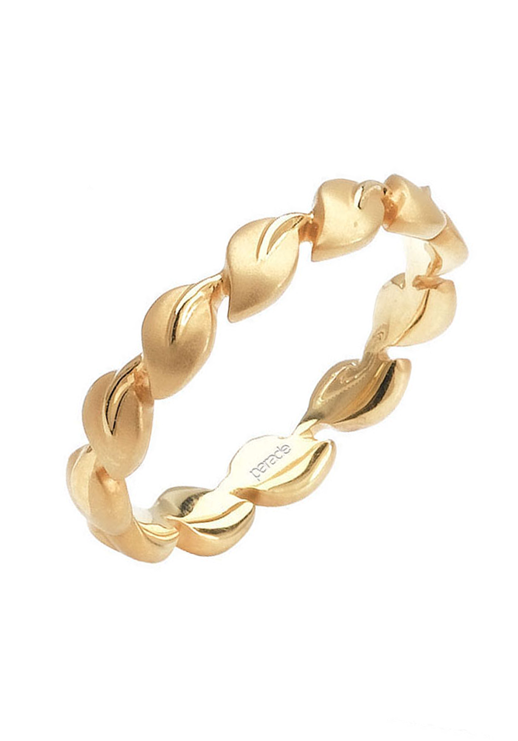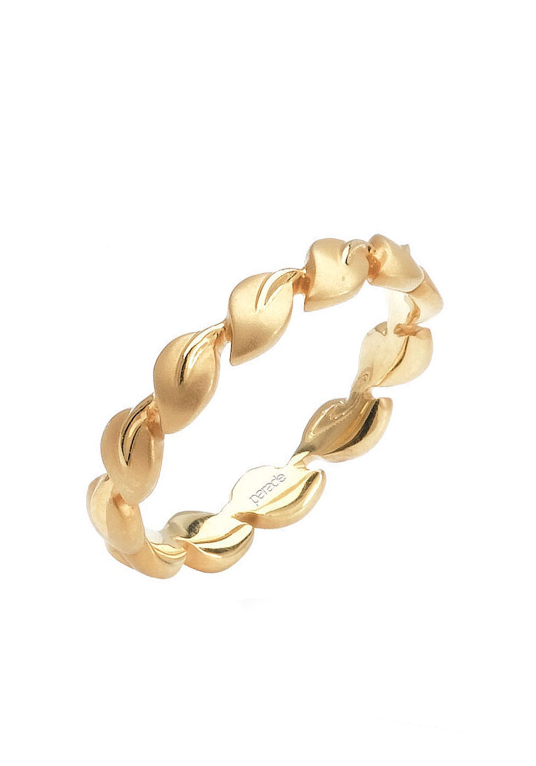 Satin finished cascading leaves in glowing 18k gold form this graceful, bestselling band design- which was also featured in The Vow, starring Rachel McAdams! Beautiful as a single band, yet a fabulously complementary stacking ring, this style from the Lyria Collection is eternally stylish (and is available in 18k yellow, gold and 18k rose gold (18k white gold or platinum upon request). Seen in BRIDES magazine’s “The Edit: 9 Favorite Bands” story! Also available in 18k rose gold.