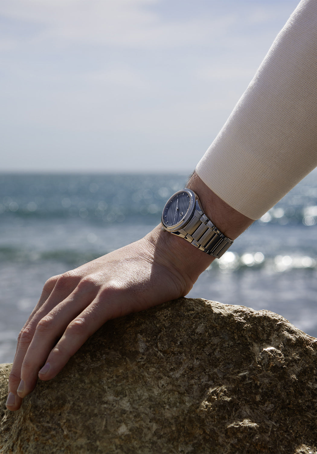 Polished & satin-finished stainless steel with platinum950 knurled bezel